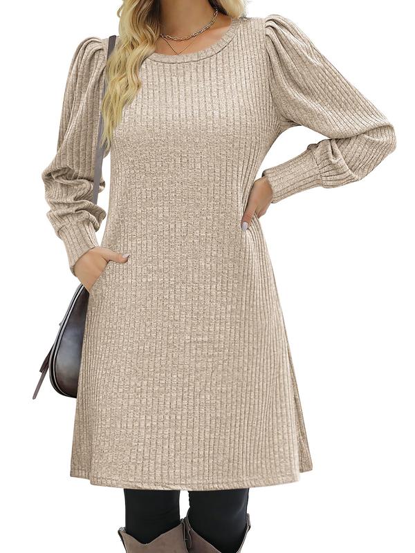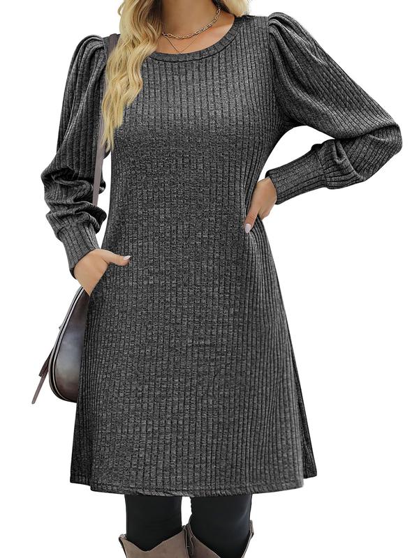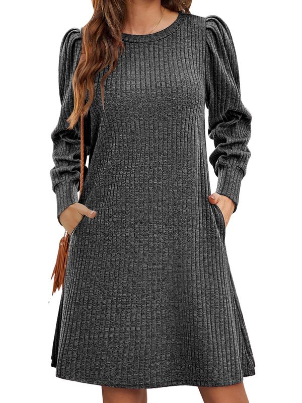 【Features】: This long sleeve tunic dress features long puff sleeve, crew neck, two side pockets, A-line tunic dress, pullover sweater dress, loose fit flattering dresses, solid color.