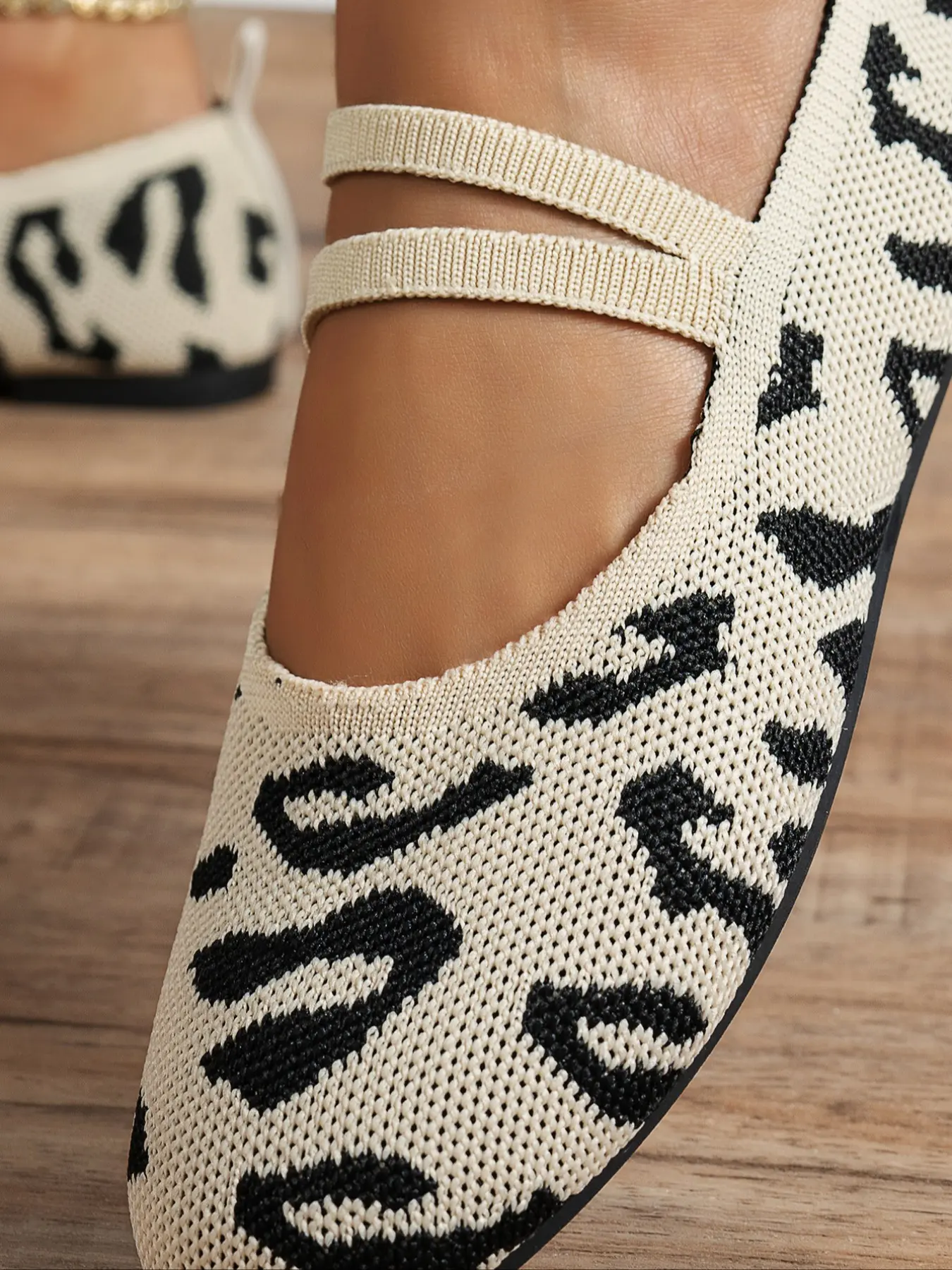 Women's Fashion Knitted Leopard Print Casual Trendy Flat Shoes, Elegant Versatile Basic Design, Comfortable Large Size, Suitable for Home and Outdoor