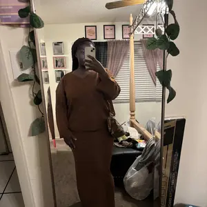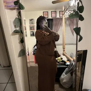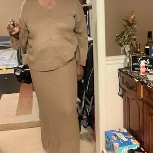 I Love the material, the color, and length of the skirt. I wanted a modest look and this is exactly what I was received. Very comfy and soft, feels like good quality and it still fits around my curves, not too flashy. It’s perfect. I ordered a large in the Fawn Brown color, I’m 5’2, 180 lbs.