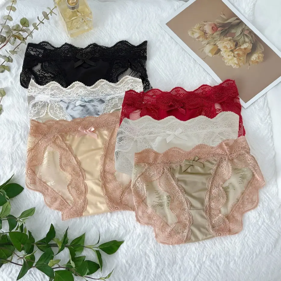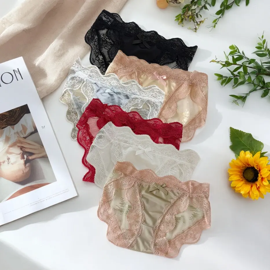 Elevate your wardrobe with these Women's Lace Floral Briefs. These seamless, sexy high-cut underwear offer a breathable and invisible fit. Perfect for those seeking comfort and style, these bikini briefs are low-rise and designed for a minimalist aesthetic. Ideal for women'swear, these light knickers come in a 6-pack multicolor option. 🌸
