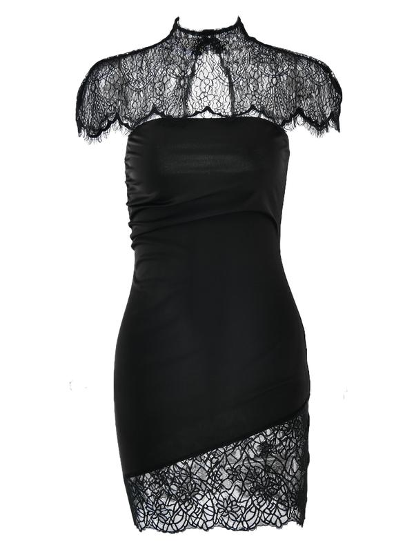 【Unique Patchwork】: Features a distinctive patchwork of lace and fabric, enhancing visual interest and setting it apart from standard dresses.
