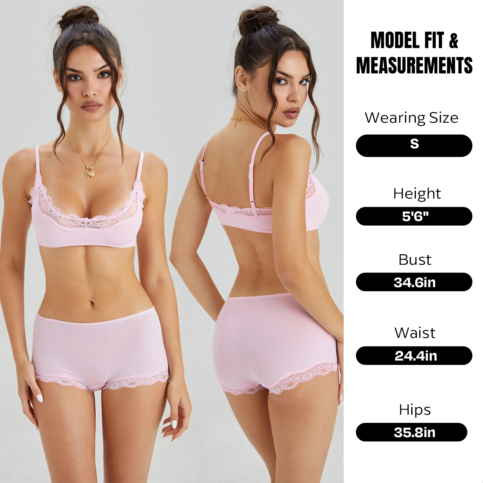 We can't get enough of the feminine silhouette on our lace series soft underwear set!