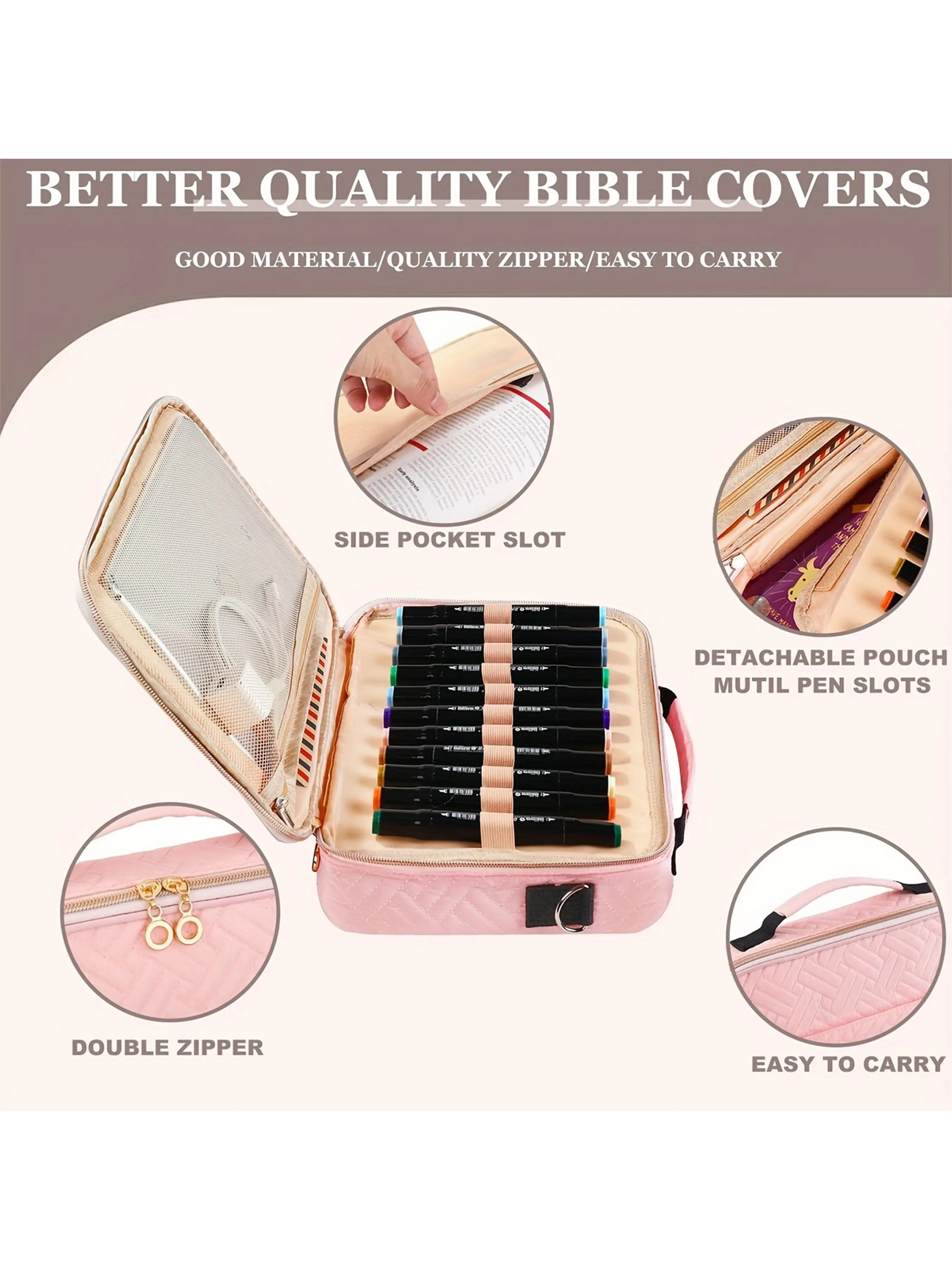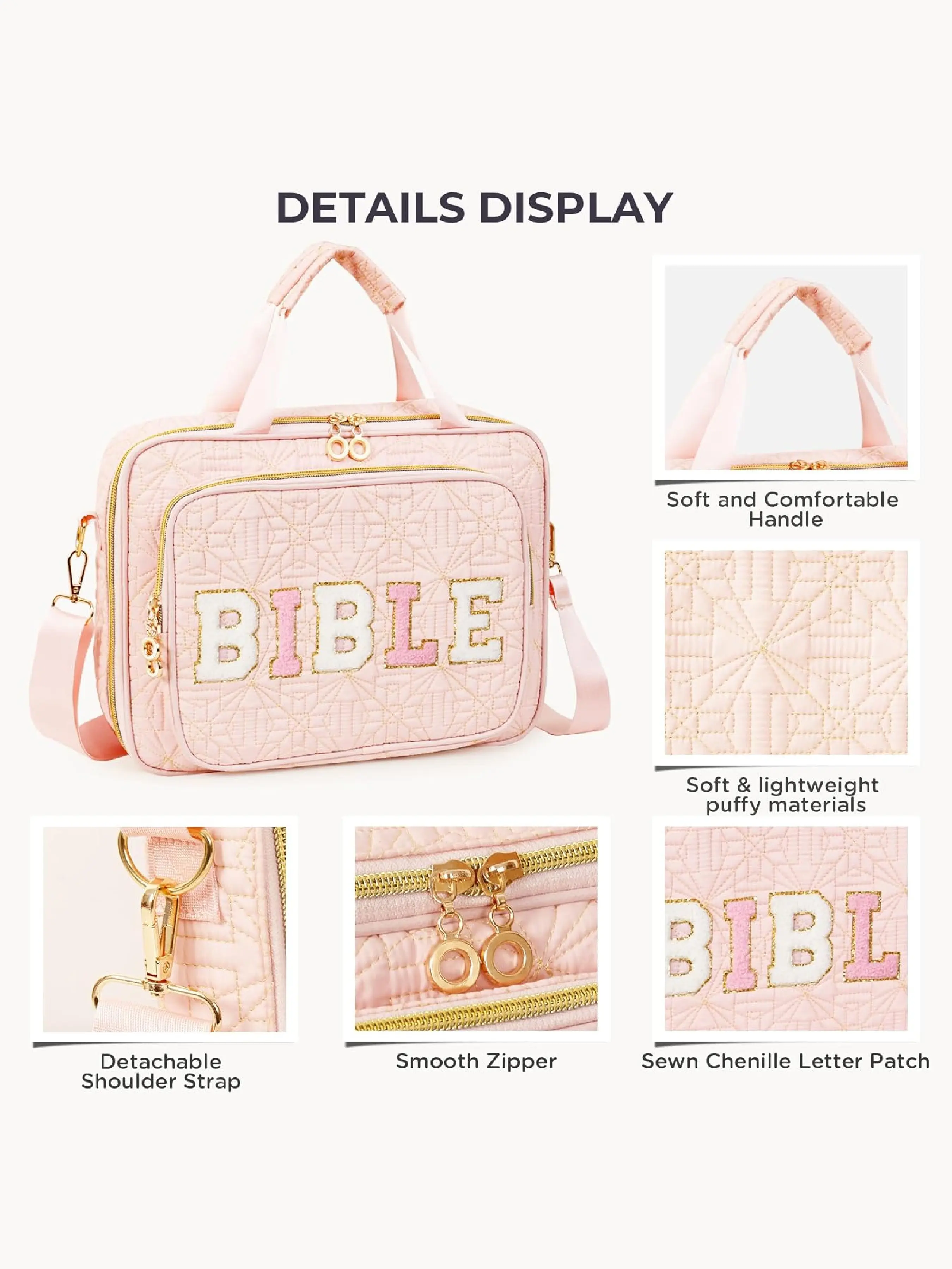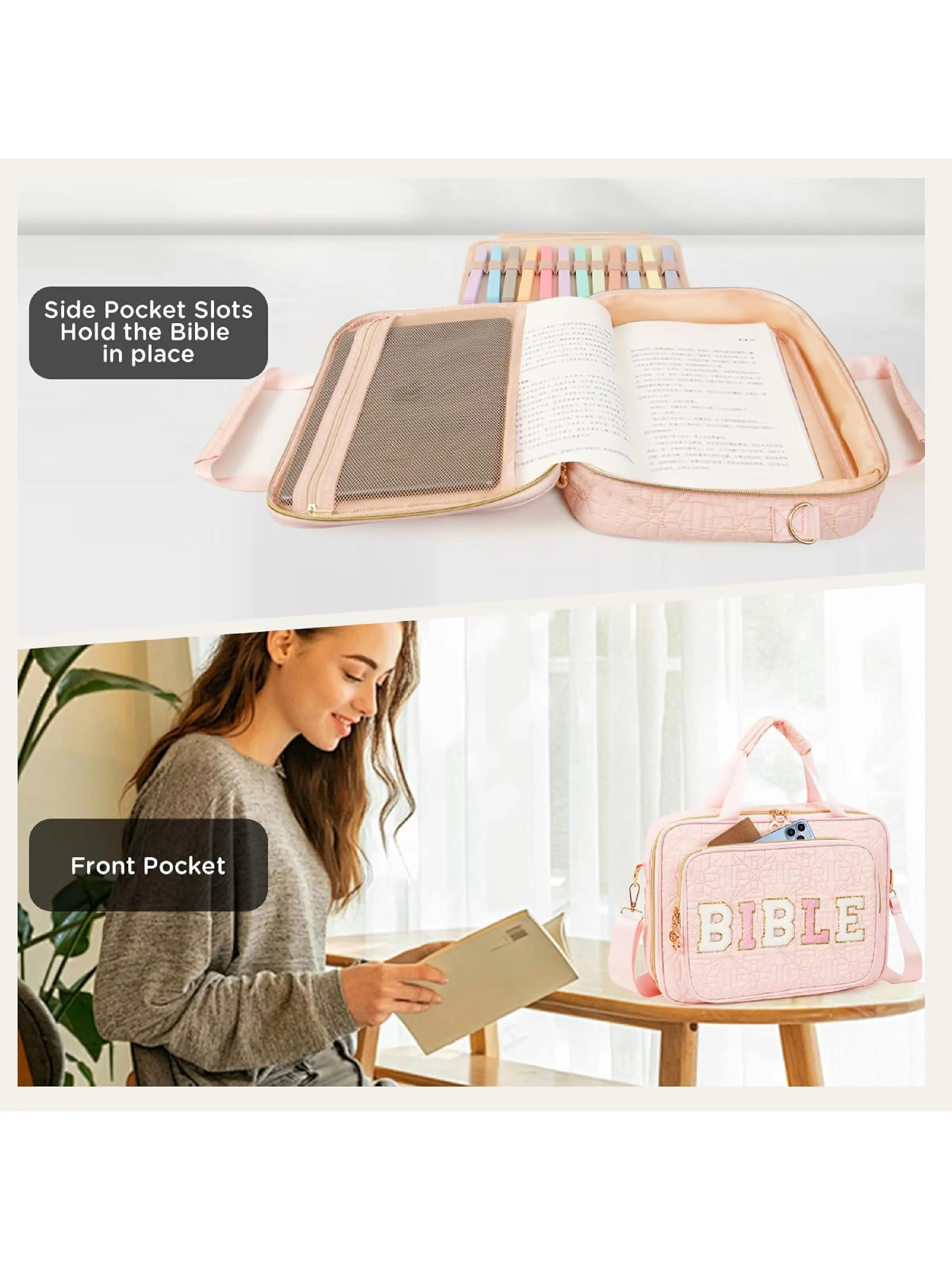 Multi-functional Storage: This Bible bag features removable dividers and multiple internal pockets to organize your books, iPad, Bible markers, highlighters, sticky notes, and other study essentials. Additionally, the external zippered pocket provides secure and convenient storage for items like your phone.