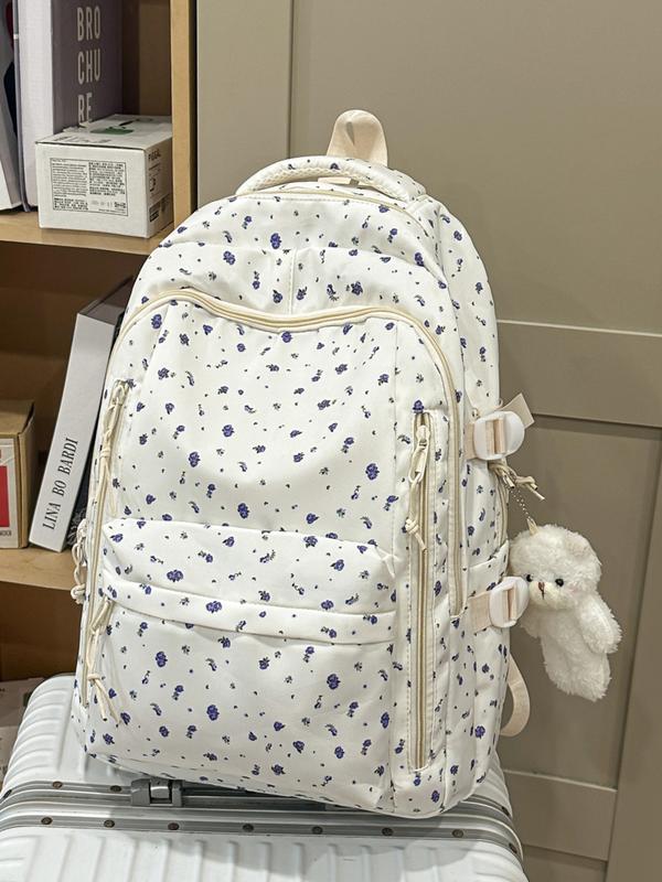 1pc  Women's backpack with large capacity, zipper closure, and free pendant. Fashionable, versatile, cute, and trendy. Suitable for students going to school, campus, commuting, and traveling. Women's backpack School Backpacks