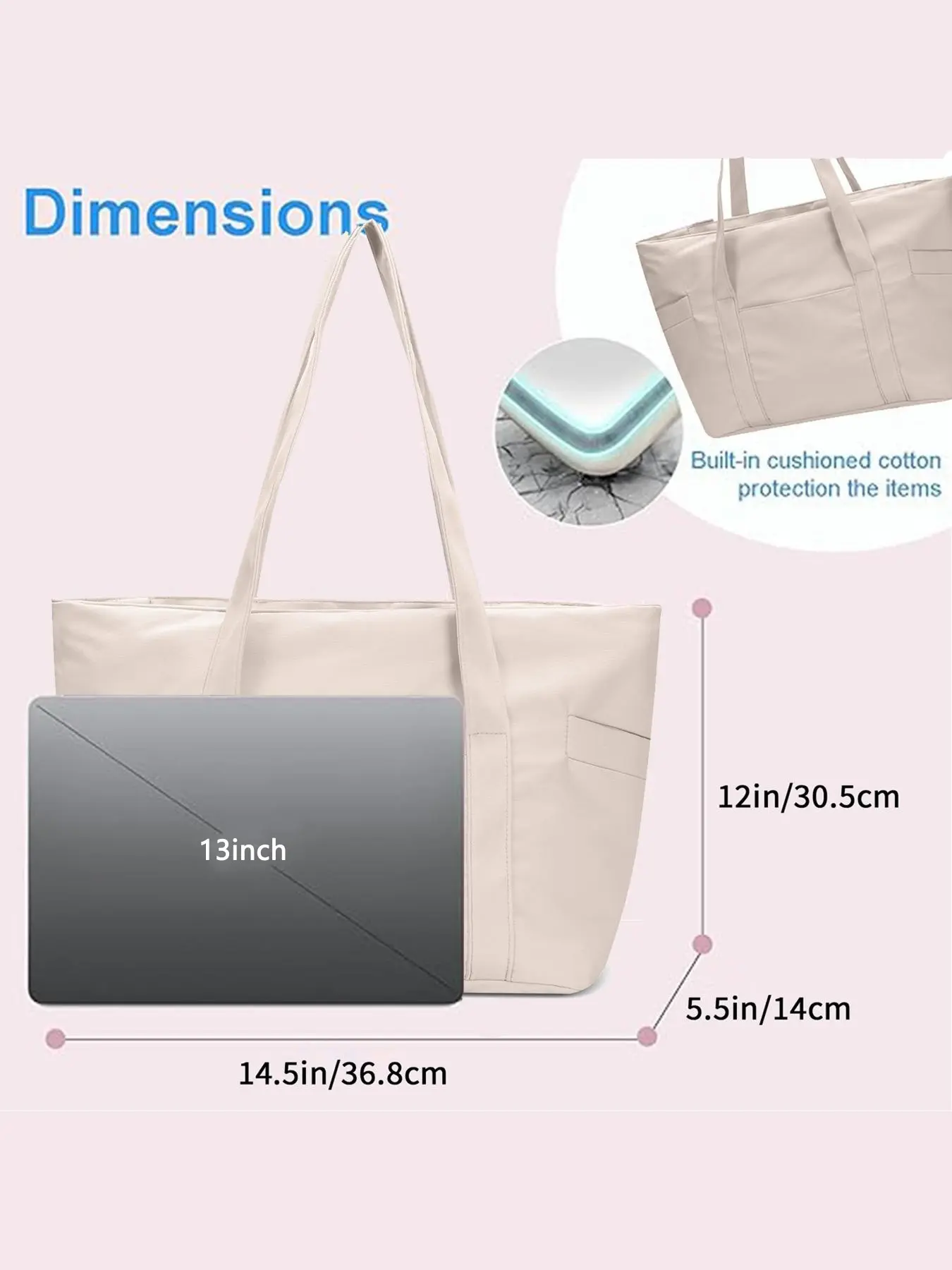 Versatile Tote: It can be used as a work bag, laptop bag, gym bag, tote bag, casual shoulder bag, or travel bag. Suitable for work, travel, shopping, gym and more occassion