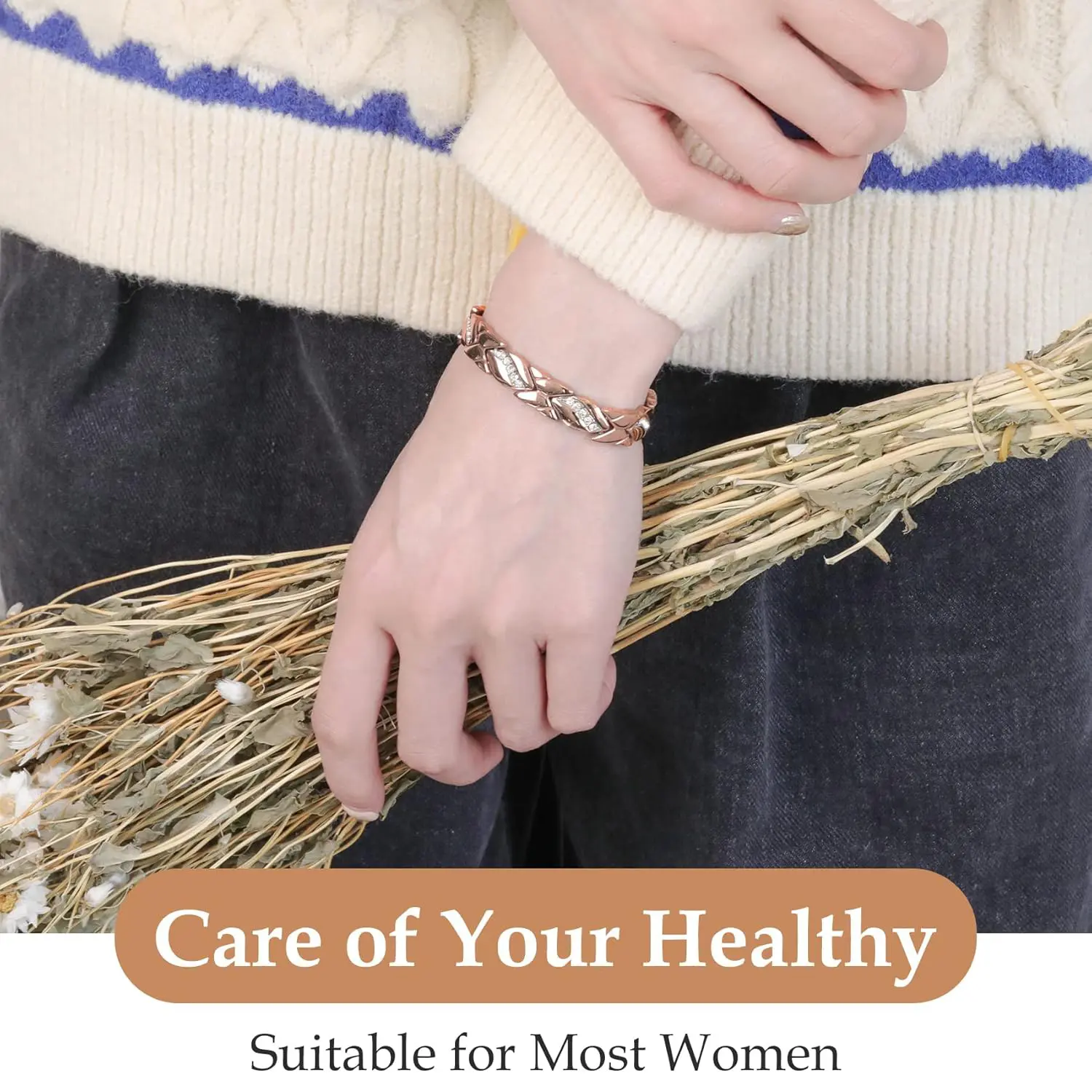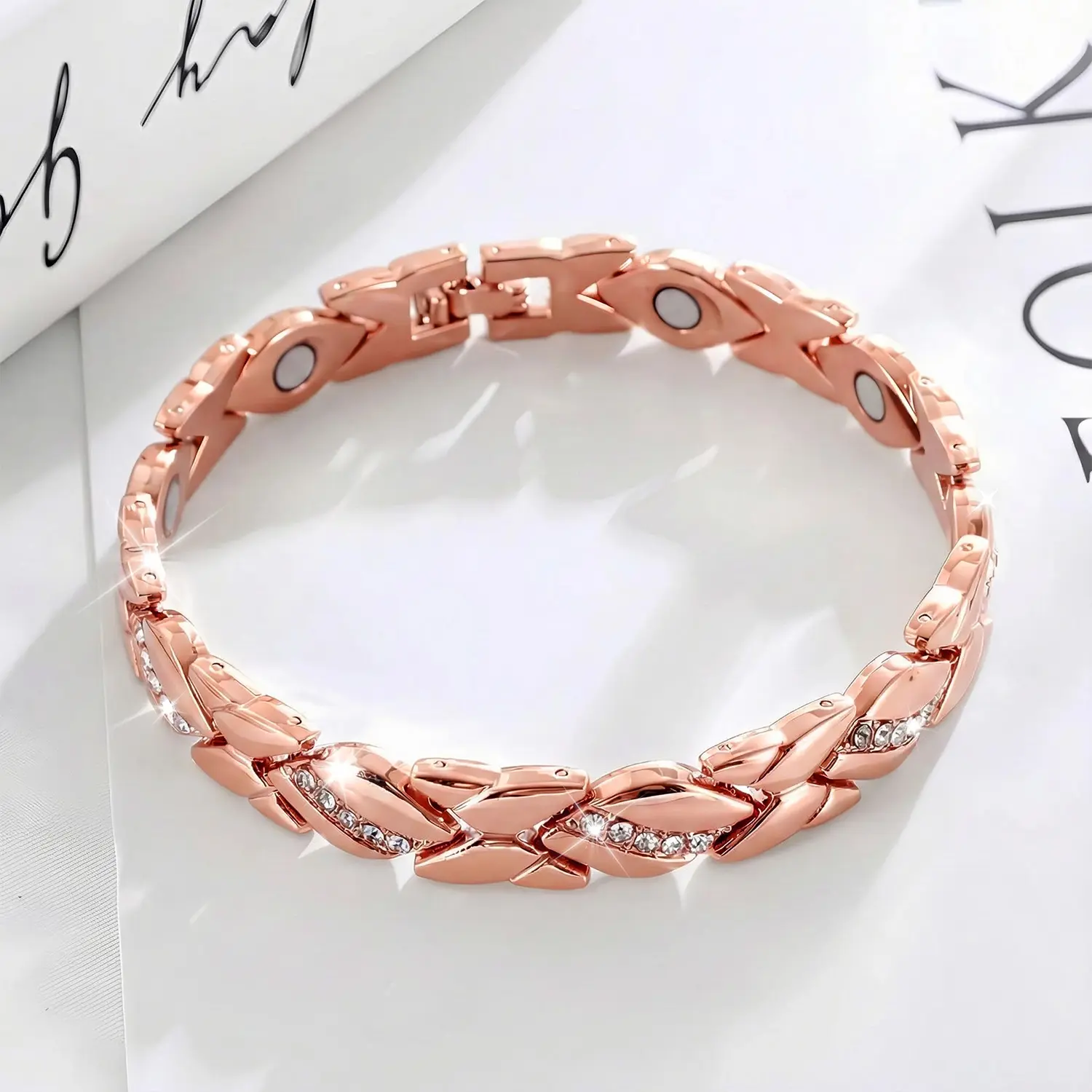 This women's leaf bracelet is a perfect blend of style and functionality. Made from pure copper with a 3500 gauss magnetic, it is ideal for outdoor activities. The diamond accents add a touch of elegance. 🌟