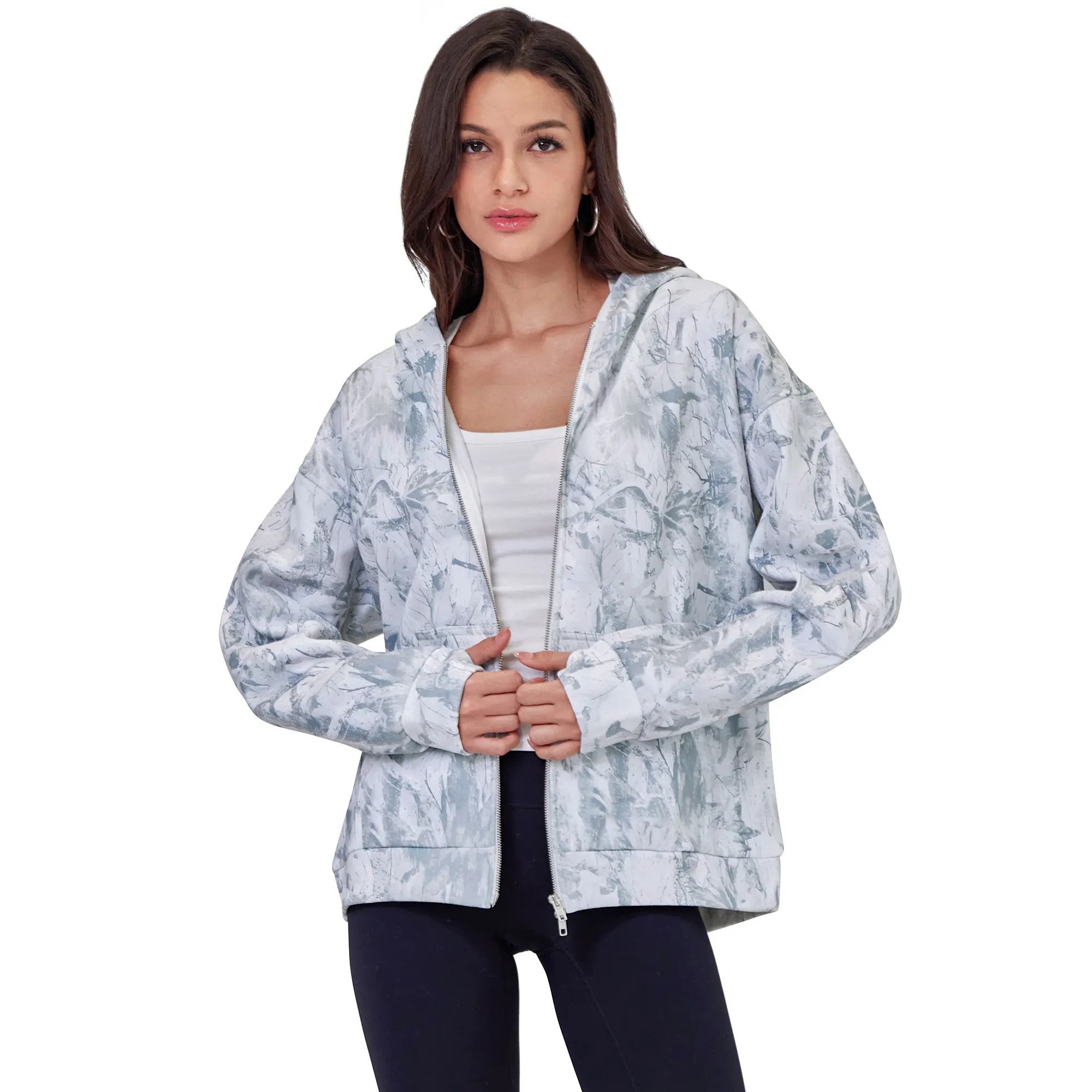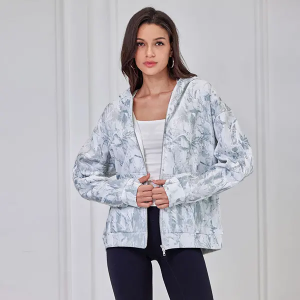This sweatshirt is a must-have for your collection. Its simple yet chic design makes it suitable for various occasions. Enjoy the convenience of pockets and the warmth of the full zip. Stay cozy and look great in this leaf print hoodie.