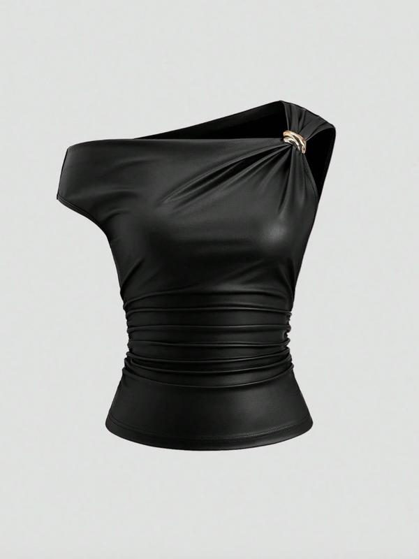 【Metallic Accents】: Featuring unique metal embellishments, this top distinguishes itself within the category, adding a touch of sophistication.