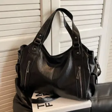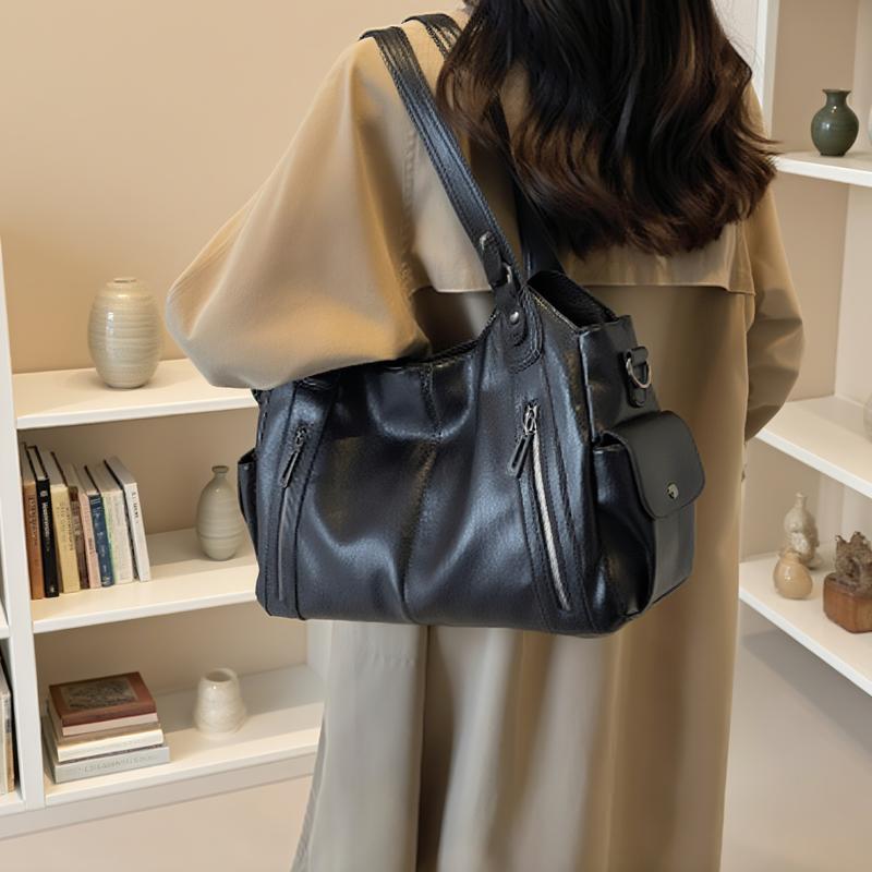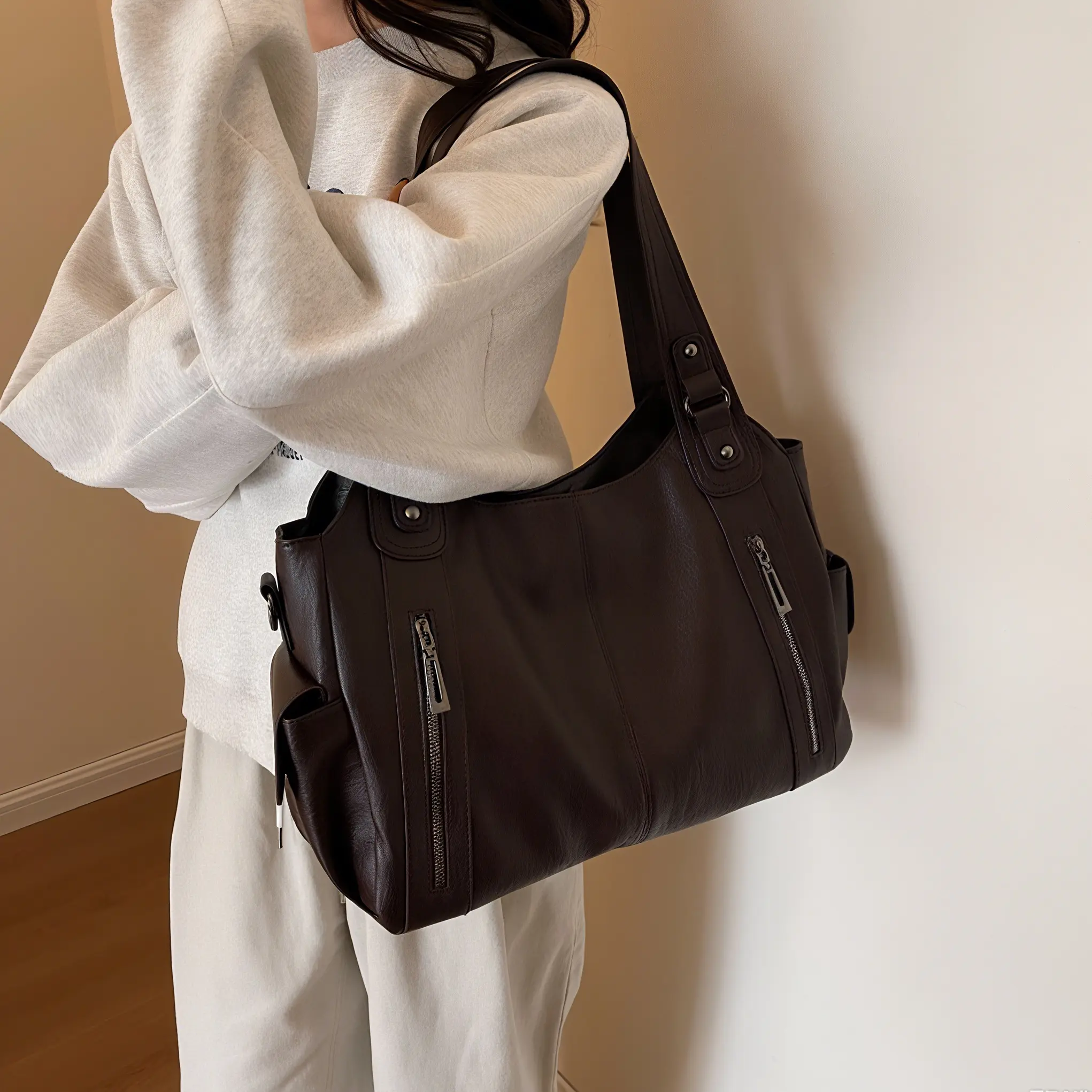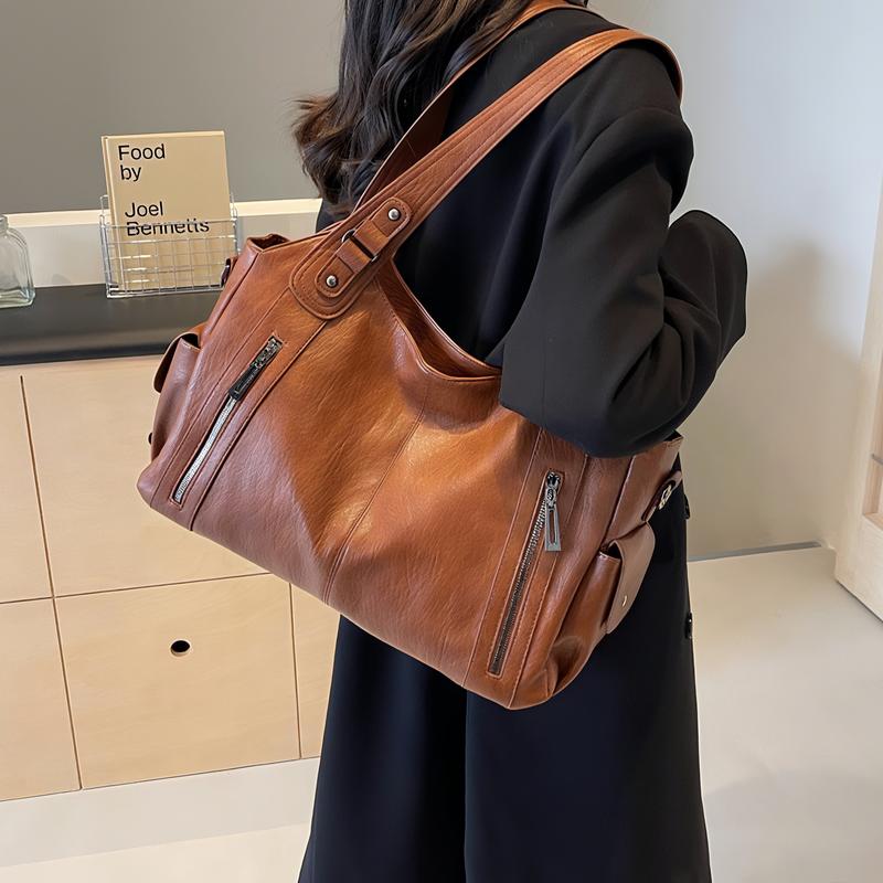 Women's Leather Tote Bag, Soft-Leather Hobo Bag,Fashionable Large-Capacity Shoulder Bag,Slouchy Crossbody Bag. Suitable for daily use and casual trendy commuting.