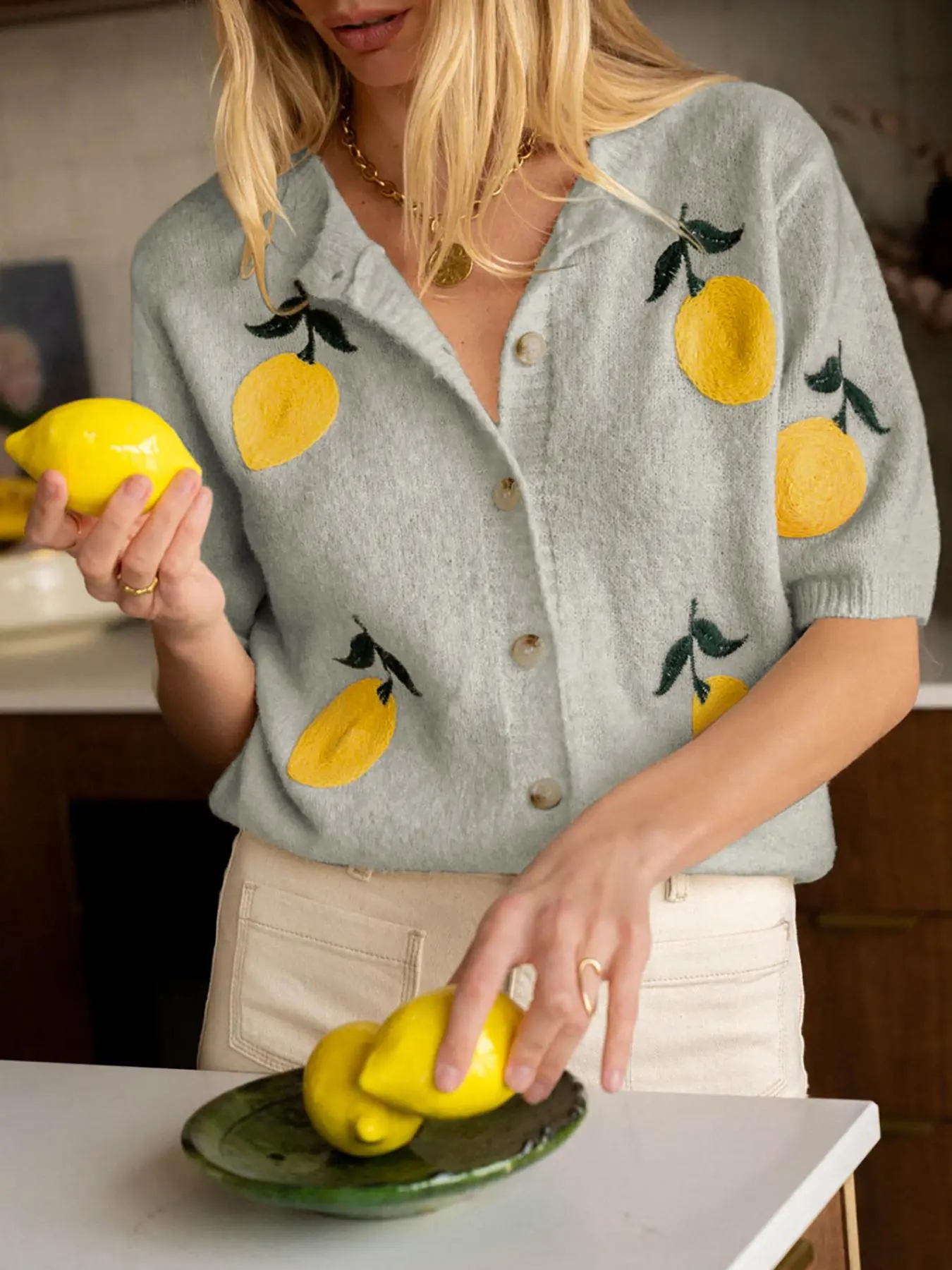 adorable summer cardigan. the lemons are embroidered. super soft and comfy