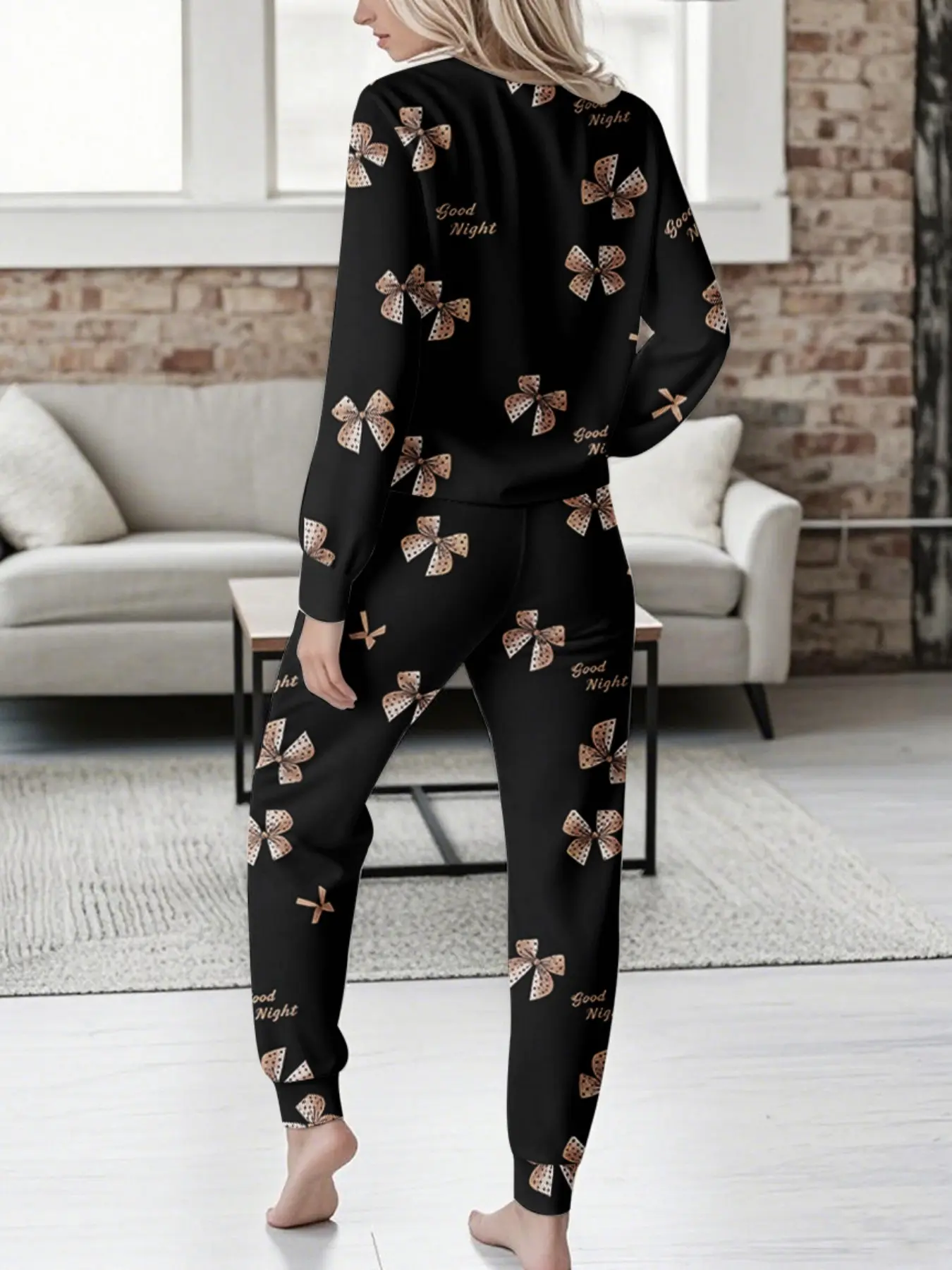 Women's Leopard Print Bow Letter print casual set #womenclothing #pajama #tiktonshopblackfriday #womenfashion