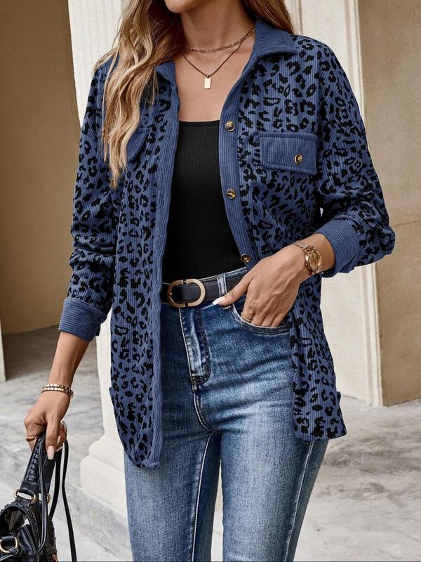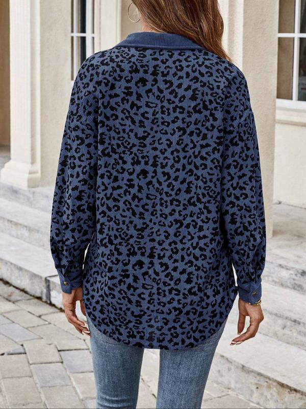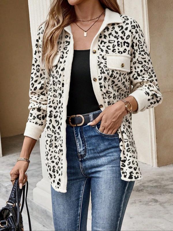 Women's Leopard Print Lapel Jacket, Vintage and Unique Style, Perfect for Daily Shopping, Coffee Dates, Casual Wear