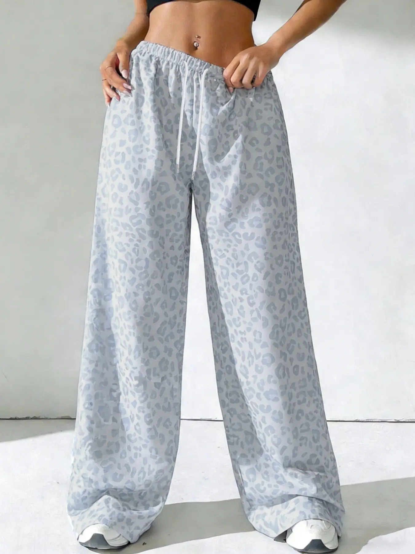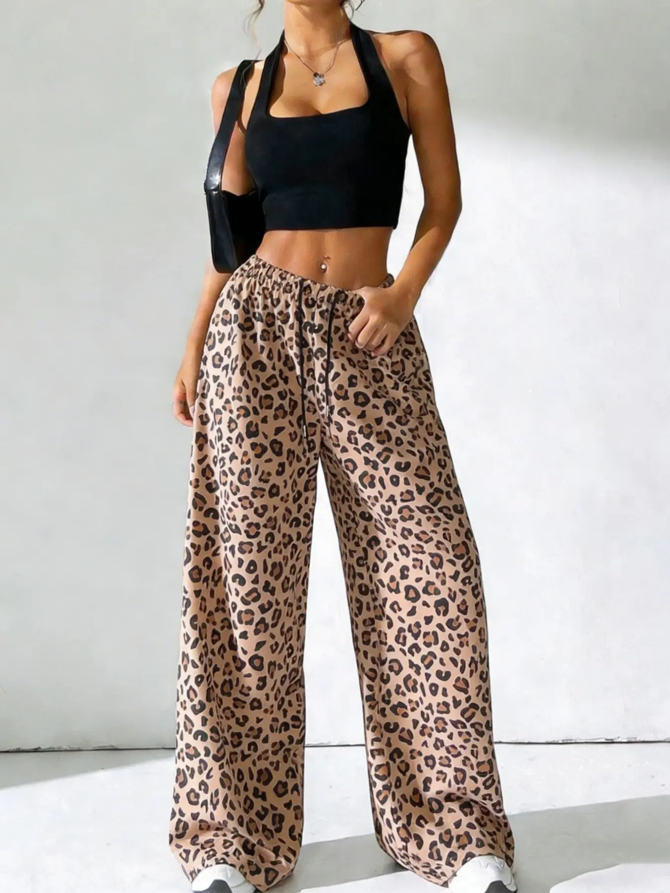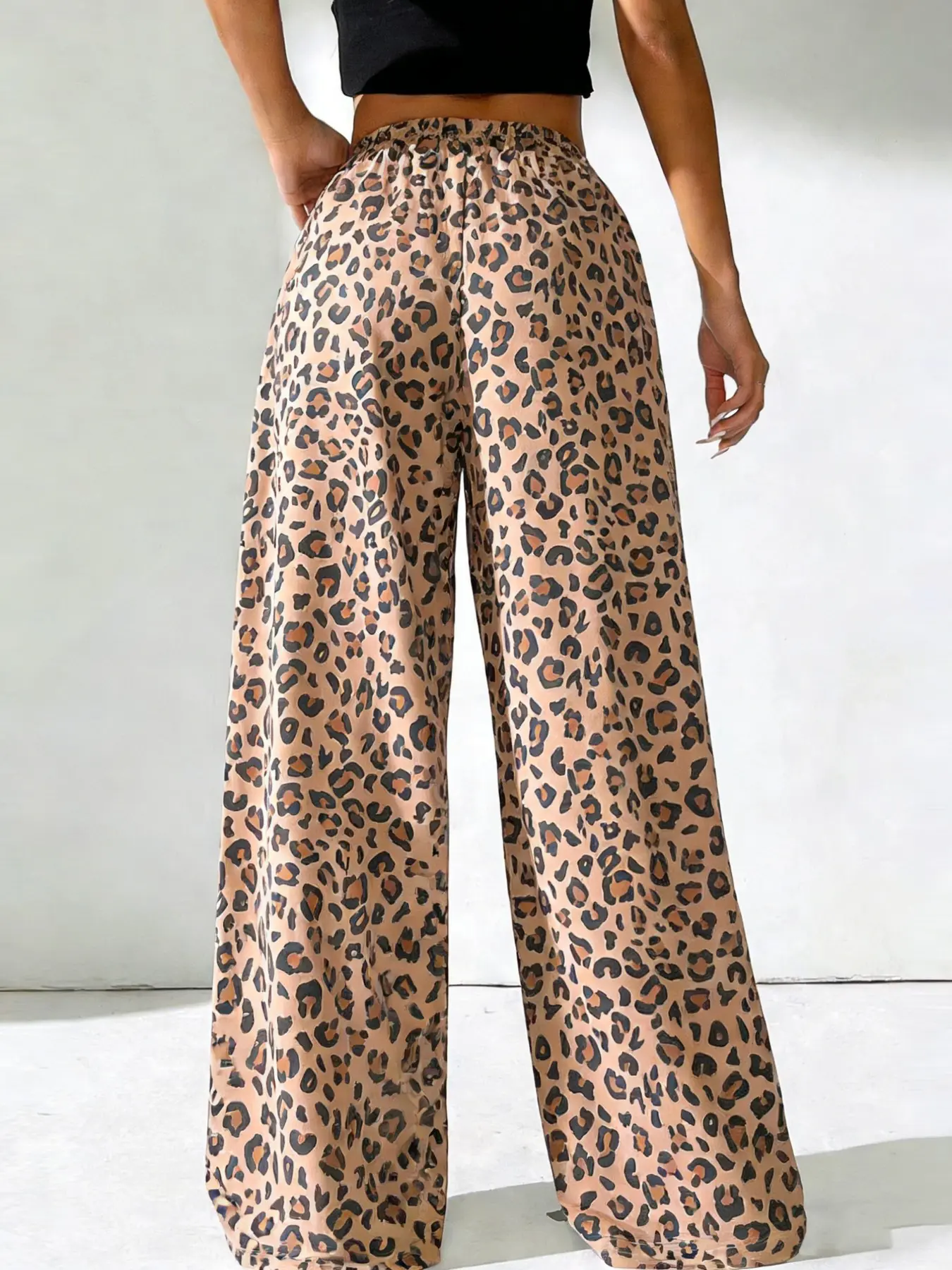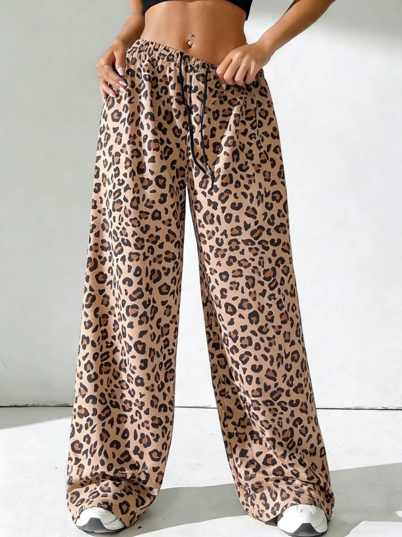 Women's Leopard Print Loose Long Pants, Casual Fashion, Drawstring Waist, All Seasons, Wide Leg, Perfect for Spring Summer Fall, Casual Lounge Pants