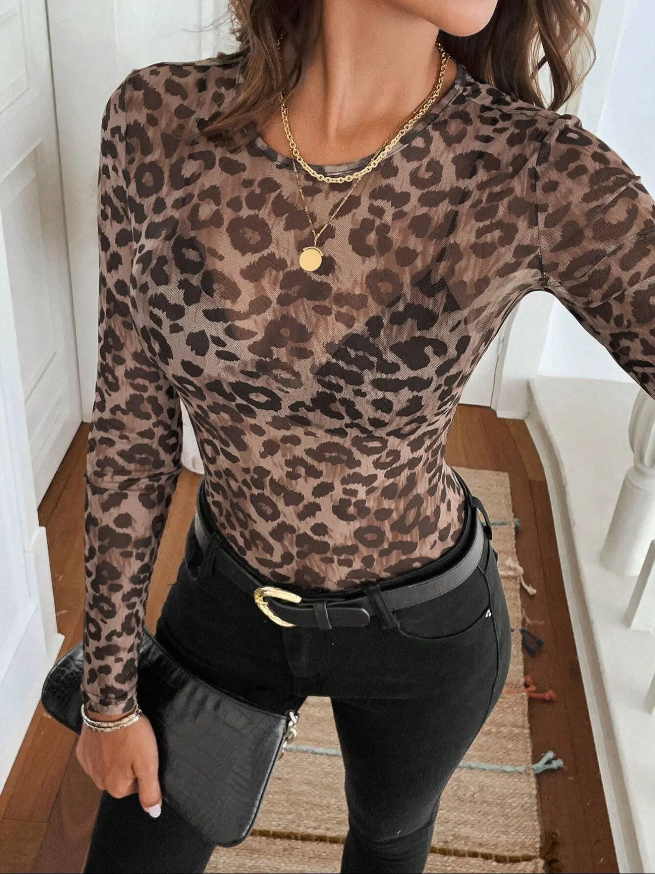 Very shear black bra or cheetah bra only
