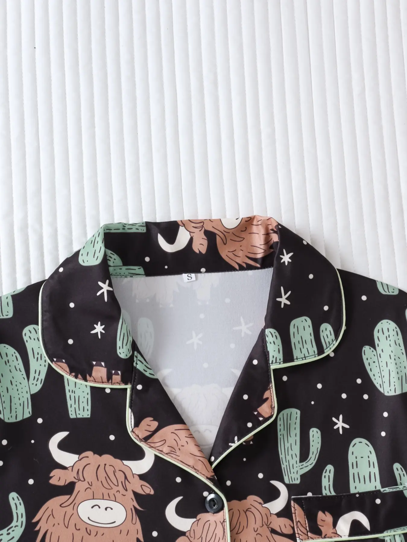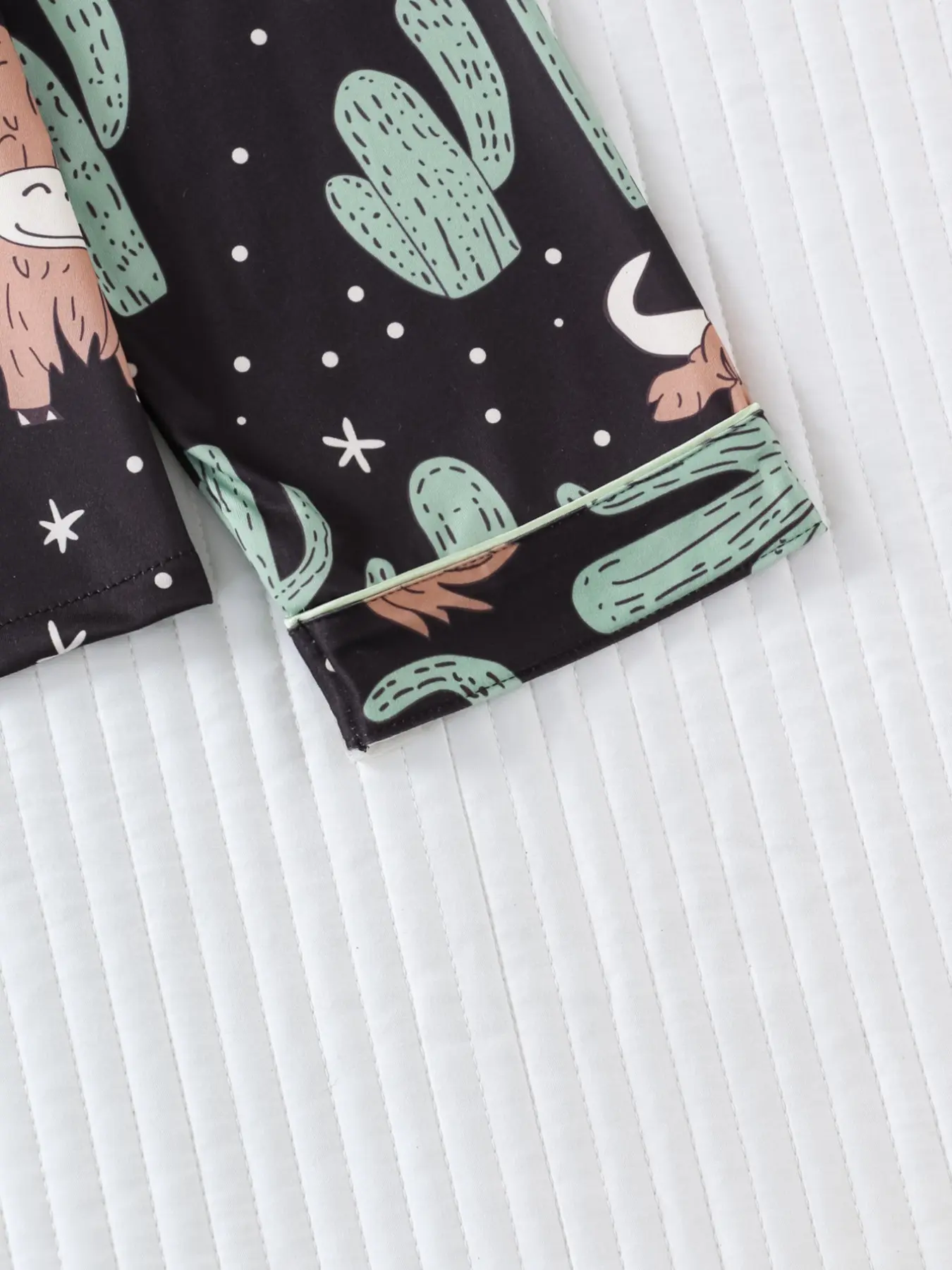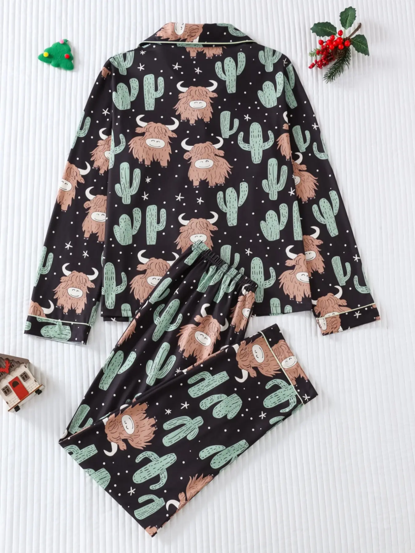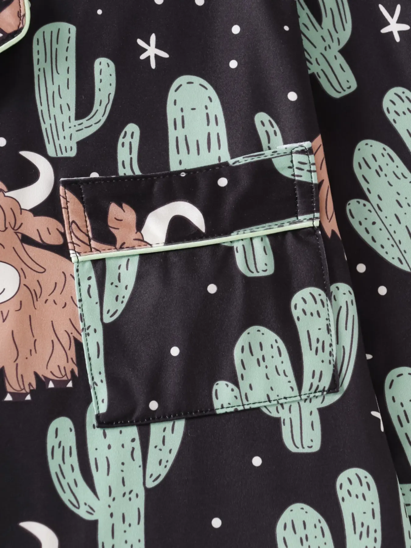 【Cactus print】: Featuring a unique cactus and yak print, this ensemble adds a fresh and playful touch to nighttime wear.