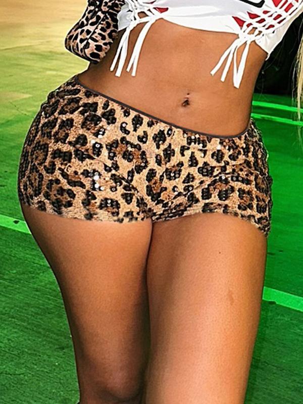 Women's Leopard Print Sequins Low Waist Shorts Y2K Street Fashion Sexy Party Festival Shorts Spring Summer Women's Clothing Womenswear Bottoms