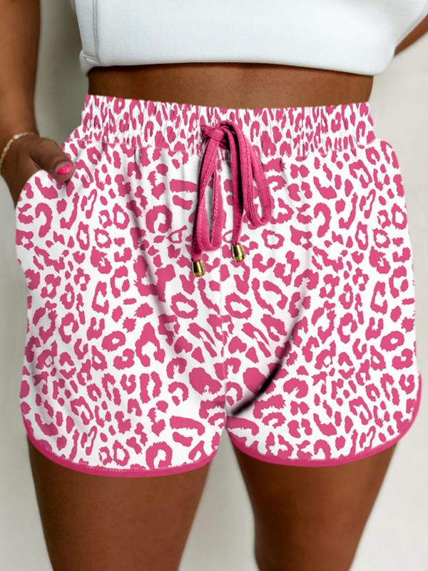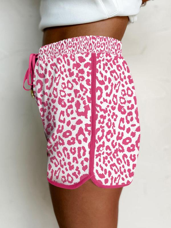 Women's Leopard Print Tie Waist High Rise Shorts, Casual Comfy Elastic Waist Shorts for Daily Wear, Ladies Bottoms for Spring & Fall