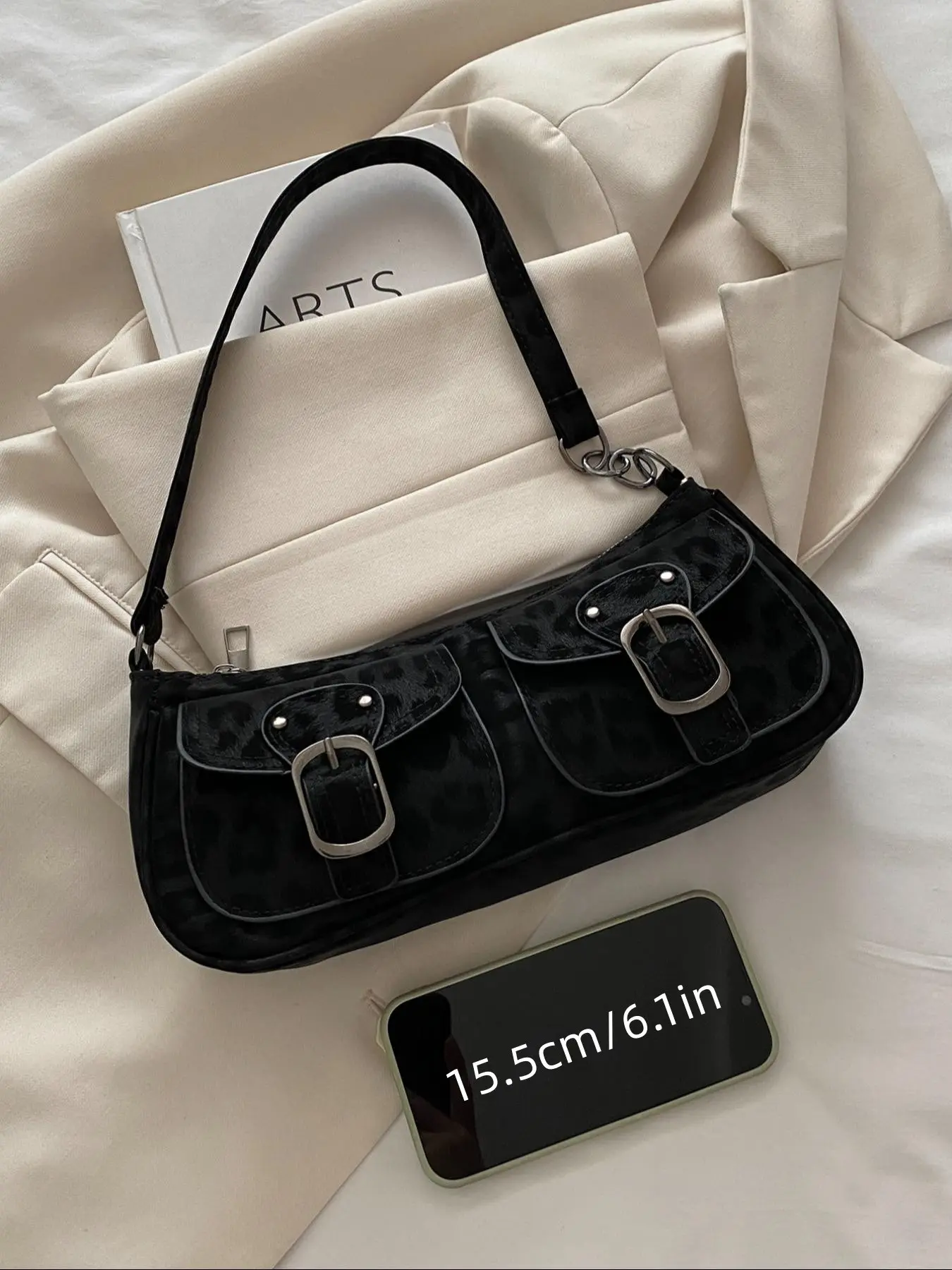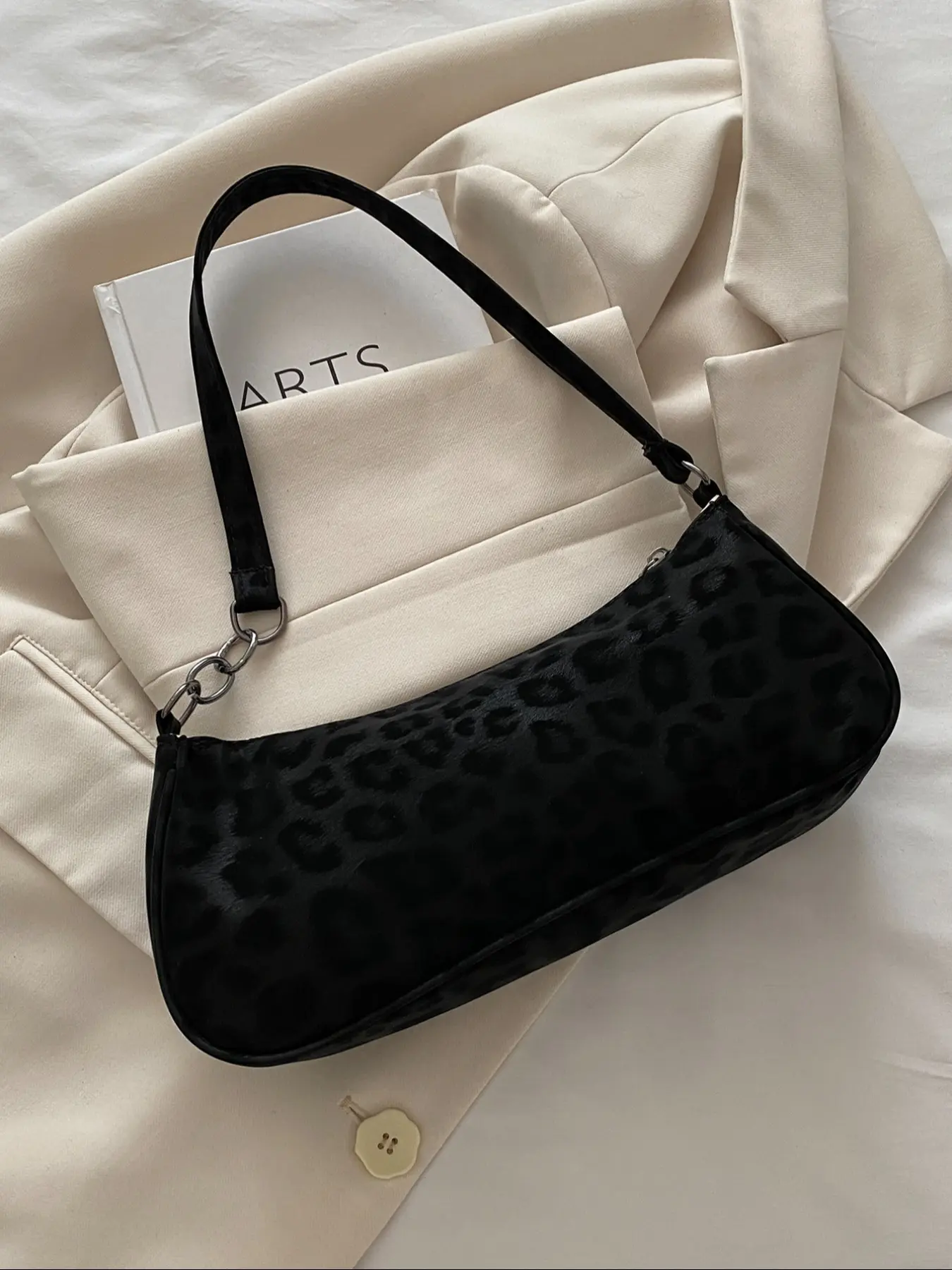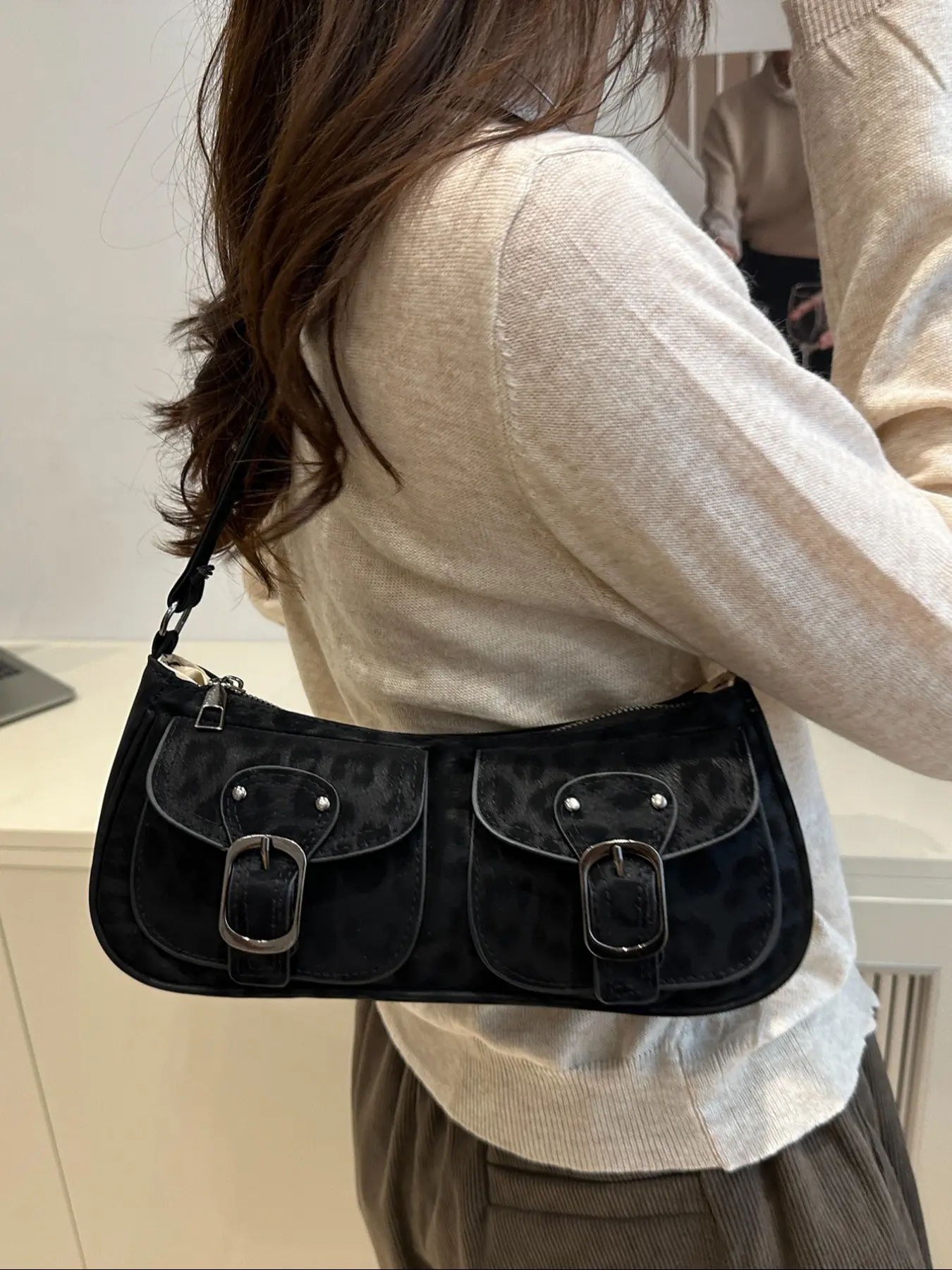 Women's Leopard Print Shoulder Bag, Vintage Dual Pocket Handbag with Zipper Closure, Fashionable and Versatile, Fashionable Patterned Bag, Perfect for Daily Use