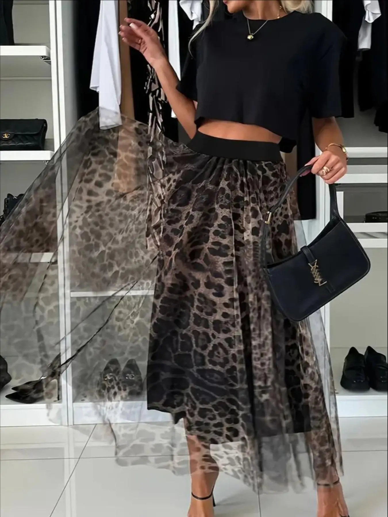 This high-waist mesh A-line skirt flows beautifully and instantly elevates a simple top.  #meshskirt #skirts #meshskirt #womensfashion #leopardprintskirt