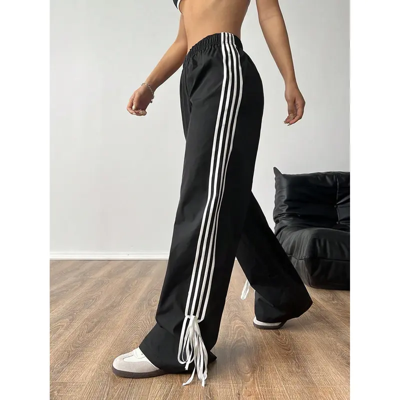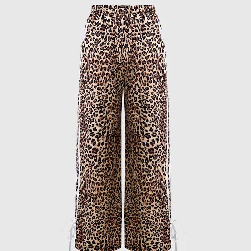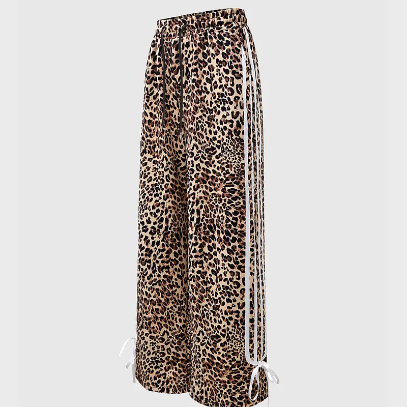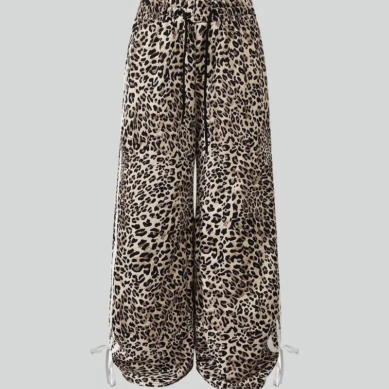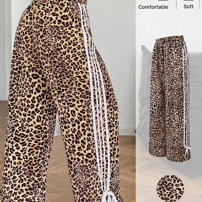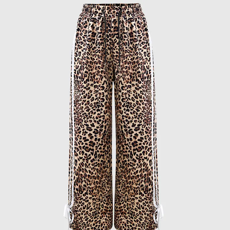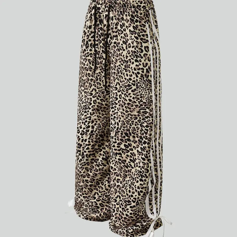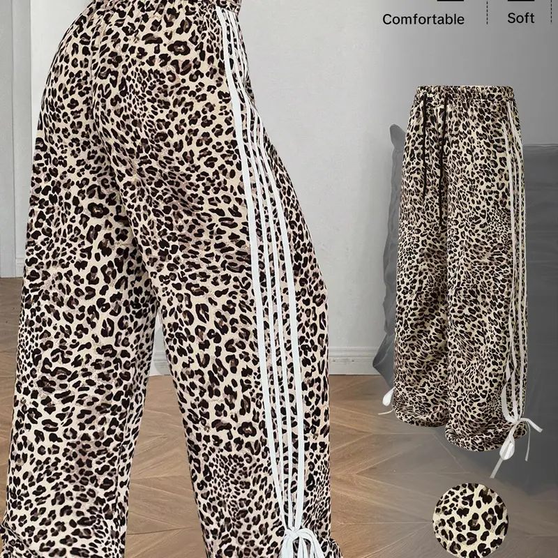 Women's Leopard Print Sweatpants Side Stripe Wide Leg Pants Y2K Streetwear Baggy Trousers with Bow Hem,Trendy Leopard Print Track Pants High Waist Loose Fit Casual Joggers Soft Comfy Lounge Trousers for Women,Hip Hop Street Dance Bottoms Fashion