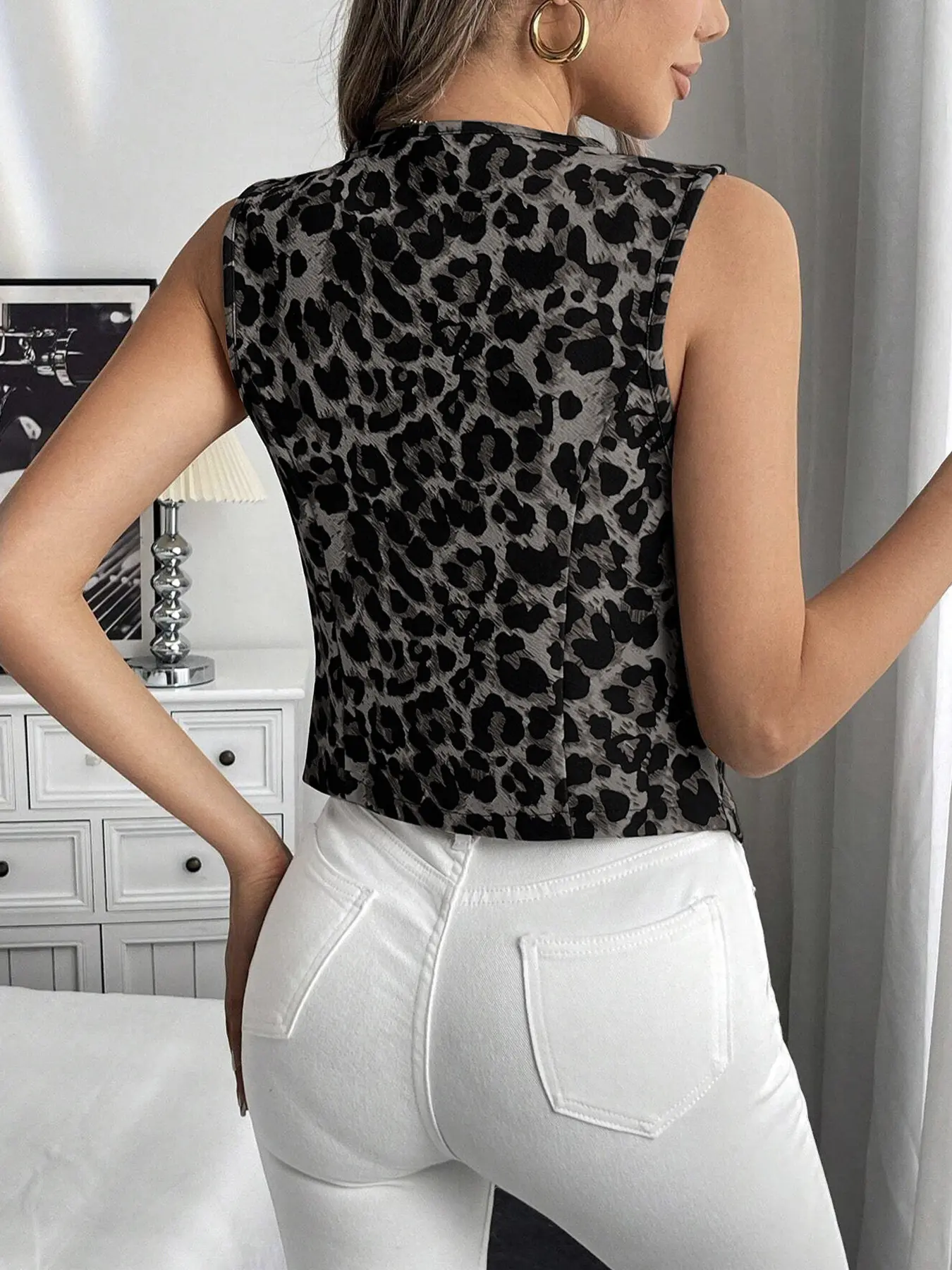 Women's Leopard Print Vest Blazer, Casual Sleeveless Outerwear for Daily Wear, Ladies Clothes for All Seasons, Casual Comfy Vests