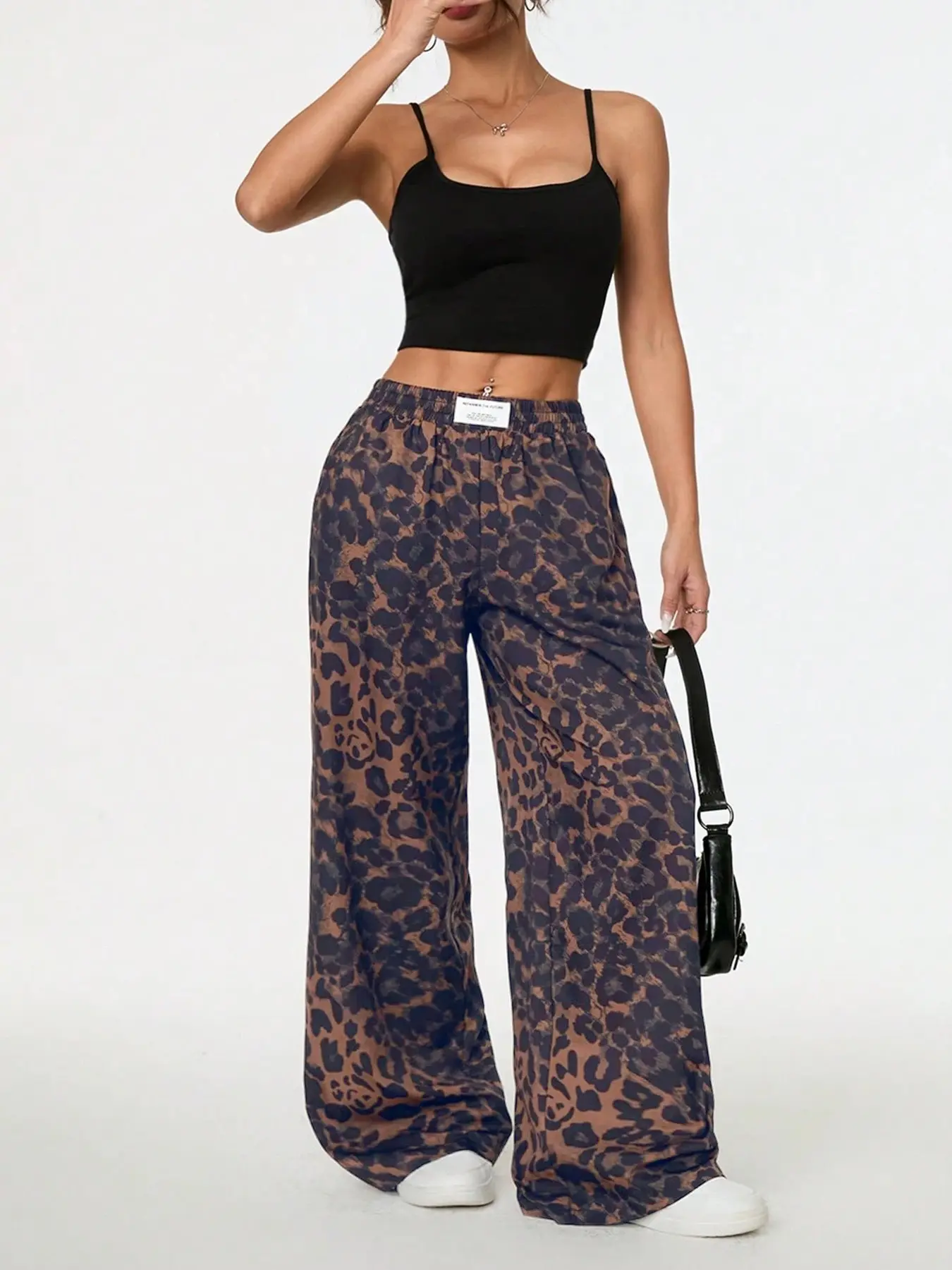 Women's Leopard Print Wide Leg Pants, High Waist Elastic Waist Loose Fit Street Style Long Pants, Fashionable Casual Wear, Casual Street Trousers#spolightfinds #ootd #affordablefashion #tiktokshop