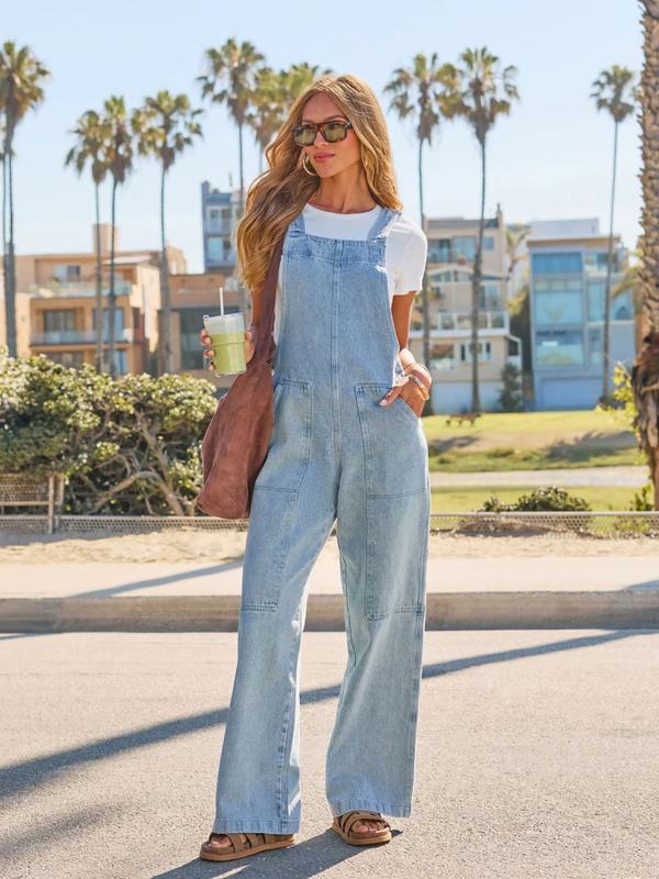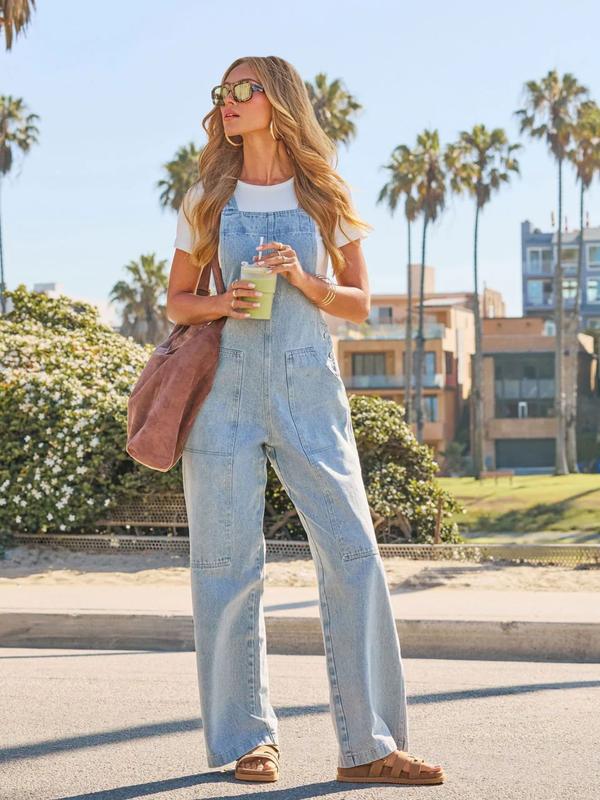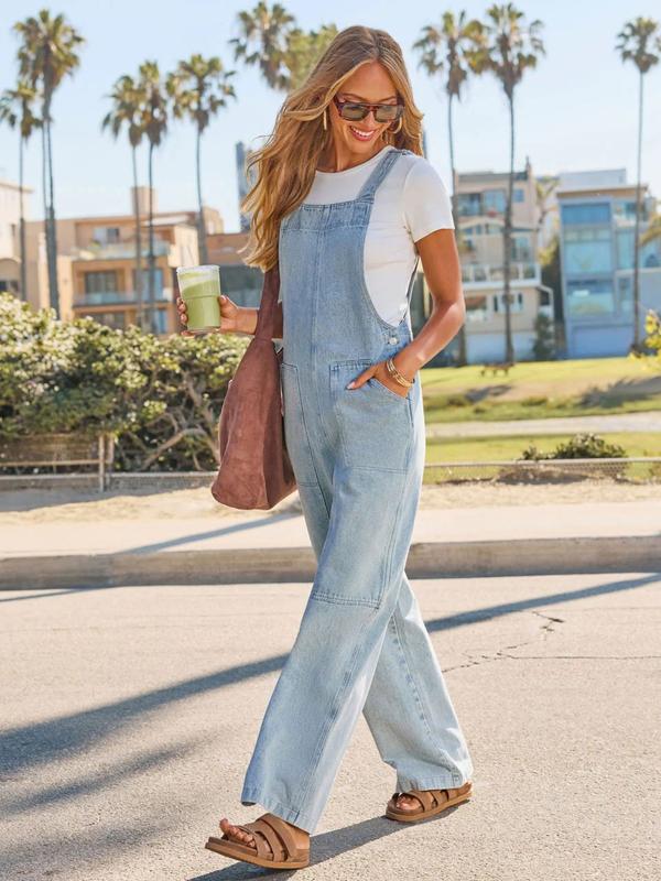 Women's Light Blue Denim Strap Jumpsuit, Wide Leg Loose Fit, Adjustable Straps, Casual One-Piece, Perfect for Daily Wear #TikTokShopBlackFriday #TikTokShopCyberMonday #spotlightfinds #ootd/  #clothing