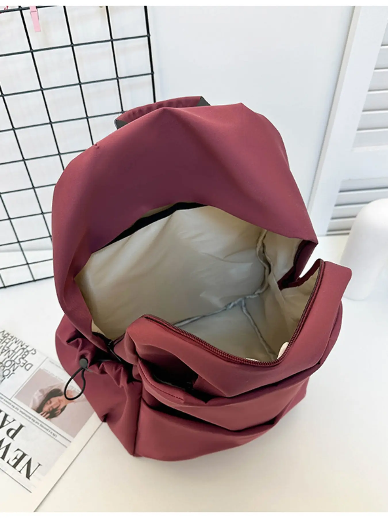 Korean Style Ins Drawstring Flap Backpack, Lightweight Nylon Casual Daypack, Large Capacity School Bag, Multi-Use Rucksack for Commute & Travel