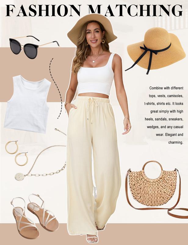 5. Womens Linen Pants Casual Wide Leg Pants Summer Palazzo Pants Loose Flowy Beach Pants Drawstring Elastic Trousers