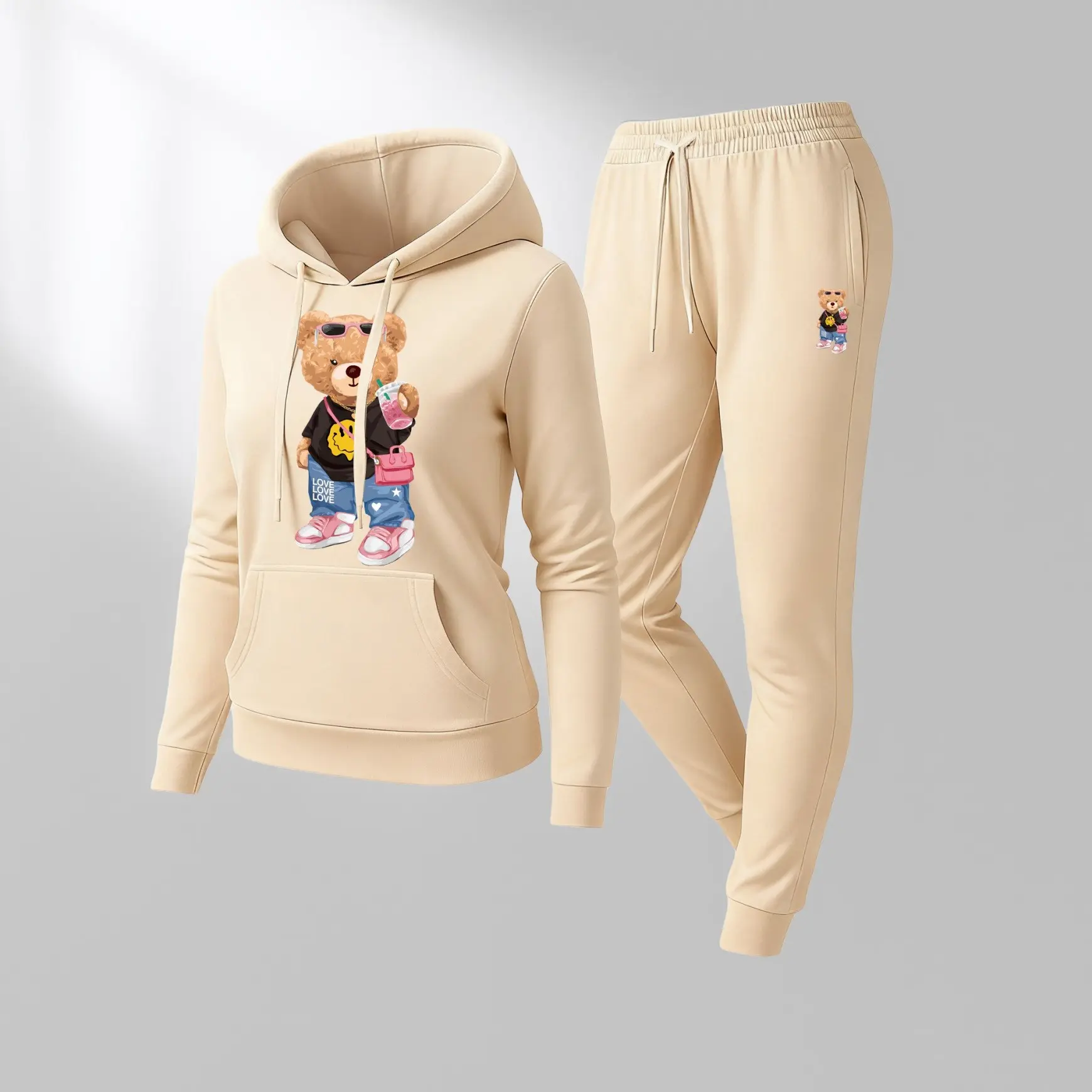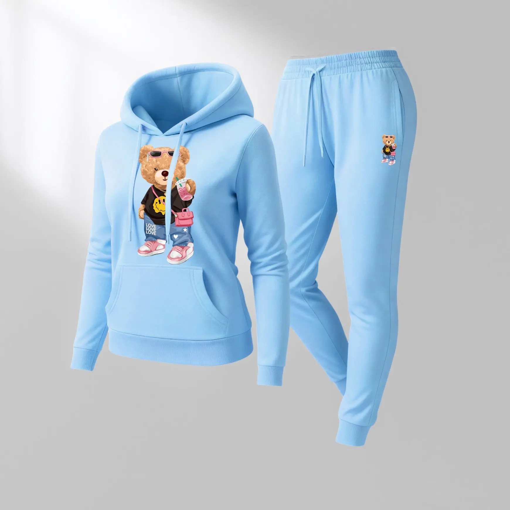 Printed Hoodie & Drawstring Sweatpants Set