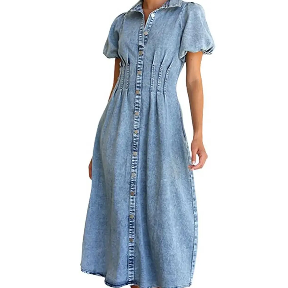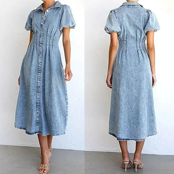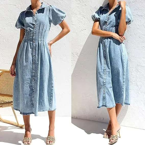 ·【STYLISH DESIGN】This long denim shirt dress for women features puff sleeve and pleated design at waist, make it more chic and trendy. This long denim dress is perfect for the woman who wants to keep charming all the time. Your Best Choice!