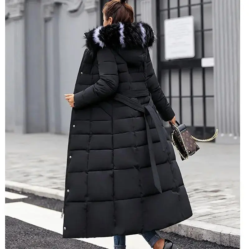 Long Down Cotton Parkas Coat Female New Winter Over Knee Loose Large Fur Collar Hooded Warm Thick Parkas Women  Padded Overcoat Womenswear Asian
