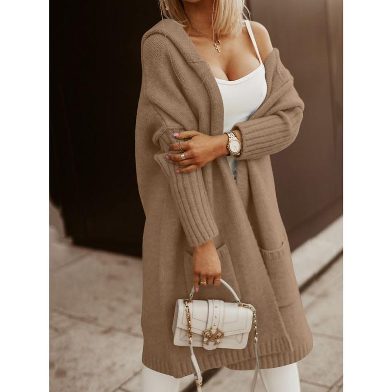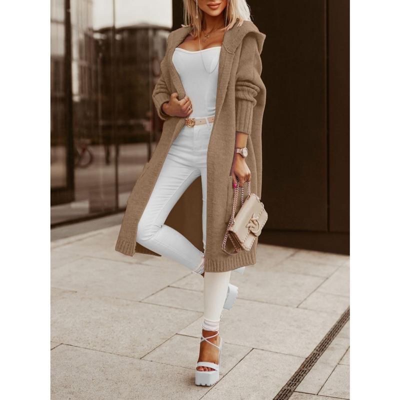Feature: Long Cardigan, Hooded Cardigans, Chunky Knit, Loose Sweater Coat, Two Side Pockets, Solid Color Cardigan, Soft and Warm Coat