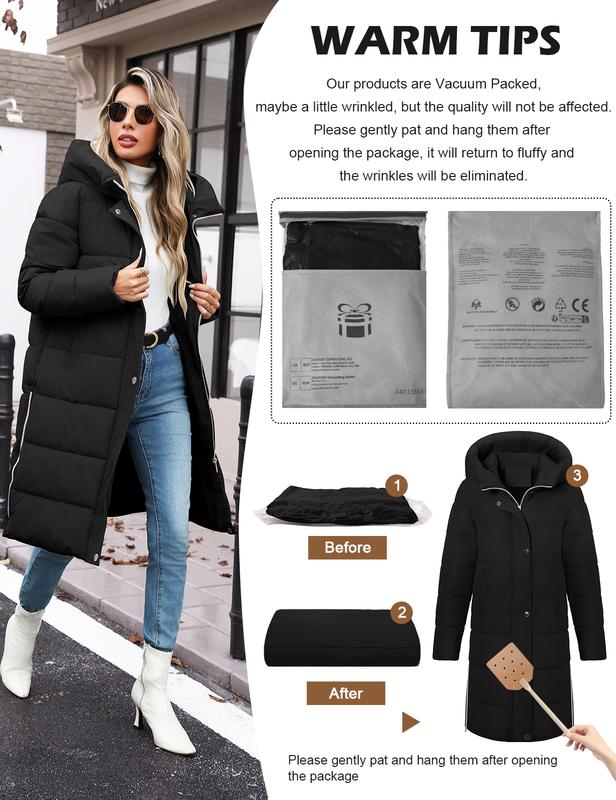 ·【Size & Garment Care】Available in S,M, L, XL, XXL. Please Refer to Size Chart for Specific Measurements to Reach Your Fit; For a long lasting use, recommend machine wash with laundry bag long puffer coat women or hand wash in low temperature water, hang to dry. If necessary, color separated washing. Do not bleach.