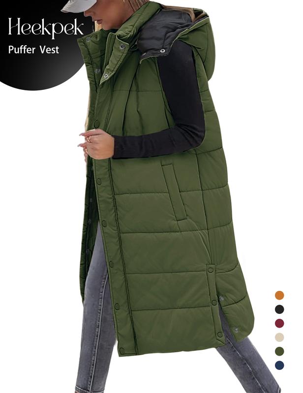 ✨ Long Puffer Vest Women With Hood Sleeveless Down Vest Warm Jacket ✨