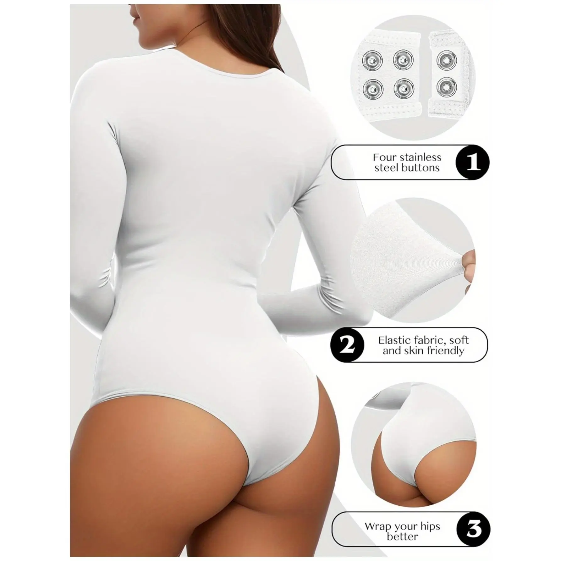 We understand that everyone has different height ratios, so we have included two rows of buttons in the womens long sleeve tops crotch area. This allows you to adjust the closing position of the buttons according to your own length and tightness preference. And make it easy to access the toilet without having to remove the entire garment. This practical feature sets this bodysuit apart from others on the market, making it a must-have for any woman on the go.