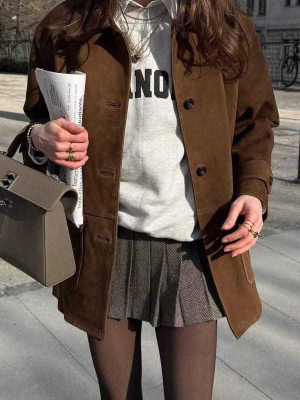 Women's Long Sleeve Casual Elegant Coat, Perfect for Vacation & Daily Wear, Autumn Winter Season, Slim-Fit Woven Fabric Outerwear #TikTokShopBlackFriday #TikTokShopCreatorPicks #tiktokshopcybermonday #SuperBrandDayBFCM #FashionDeals