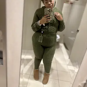 Perfect in fit and warmy. I love this fit. Comfy and can definitely wear up or if you just lounging in the house. All around I’m glad I purchased