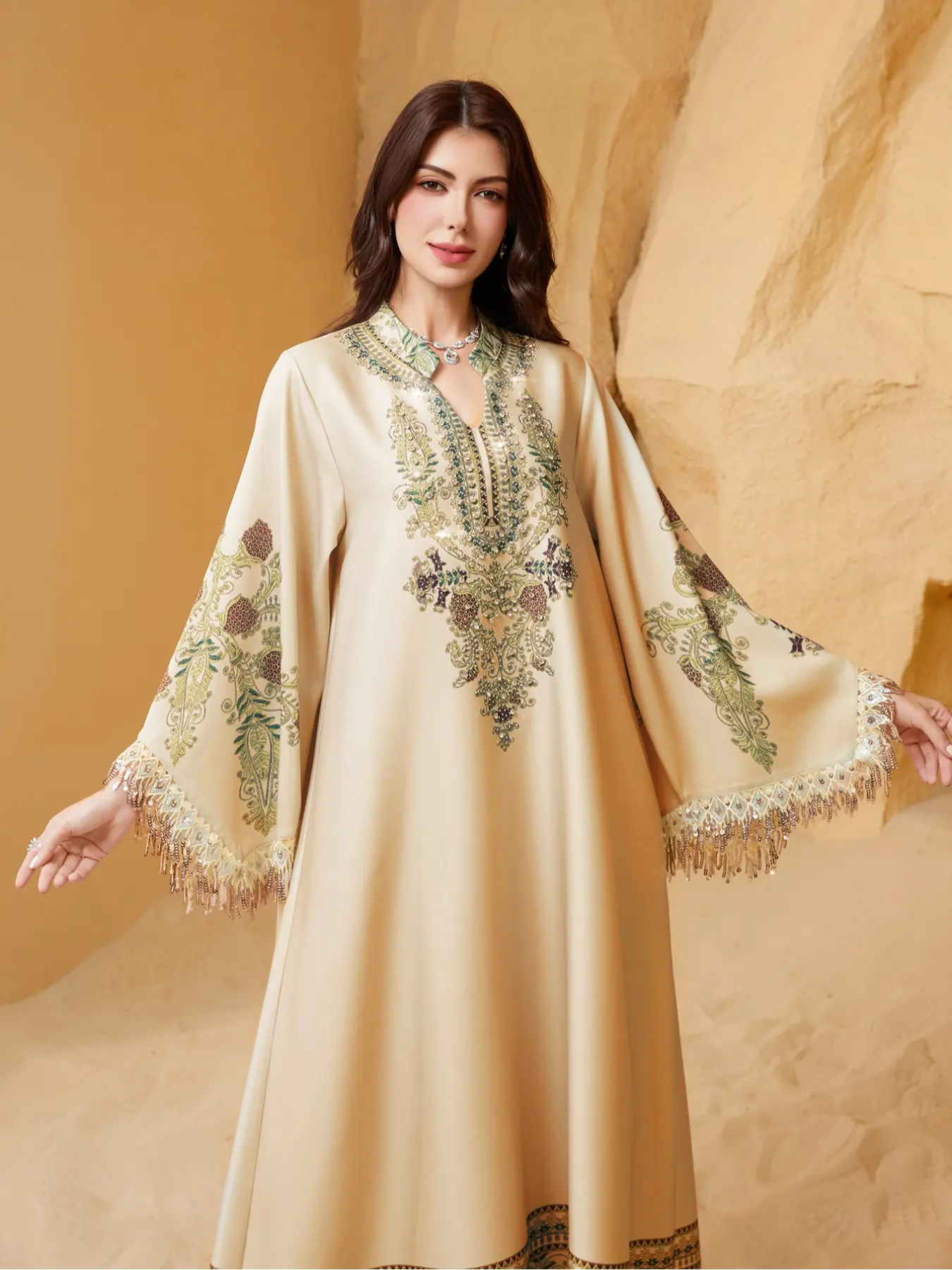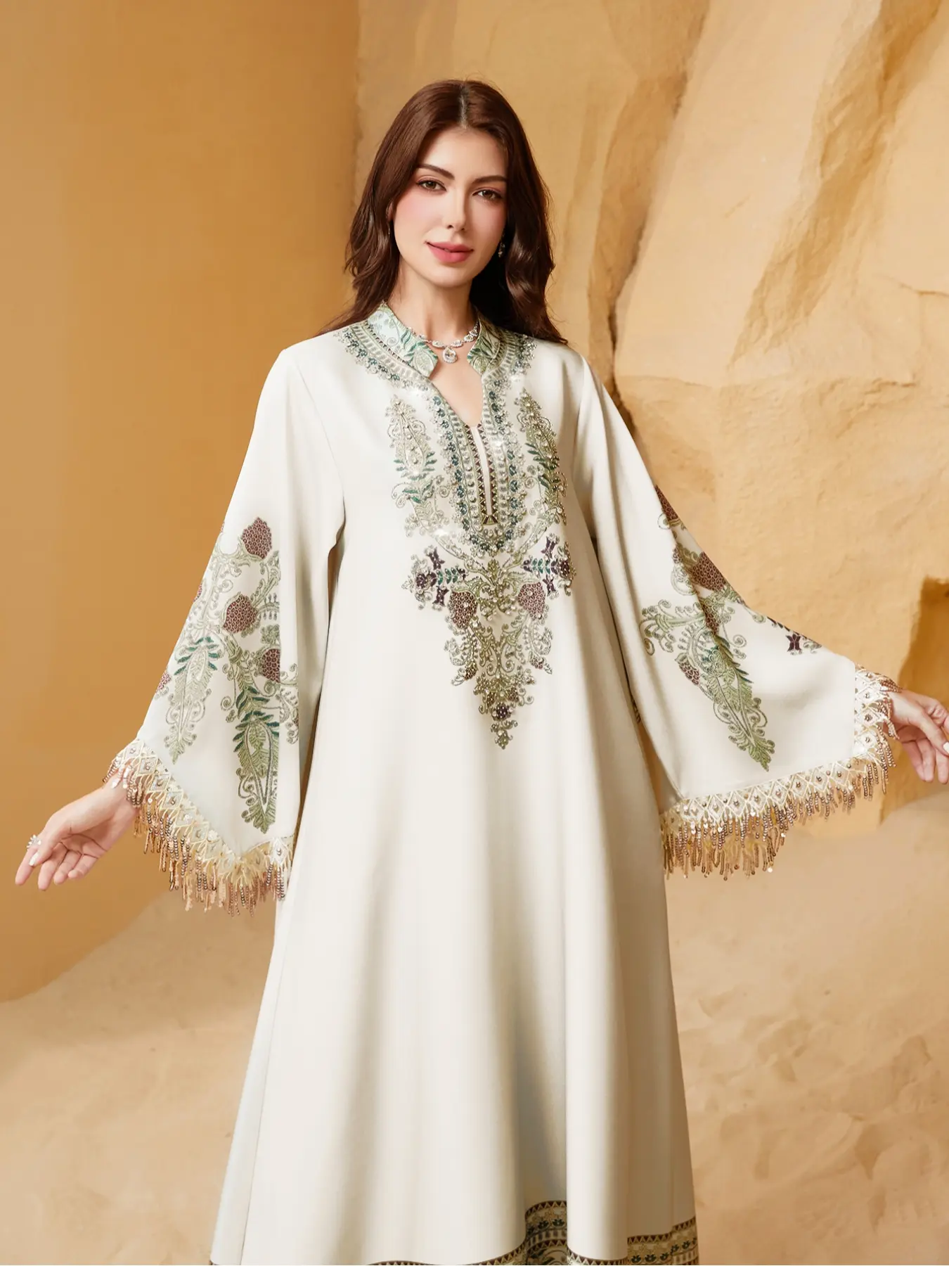 #KaftanDress #MiddleEasternFashion #EmbroideredDress #KimonoStyle #BohoChic