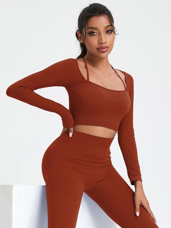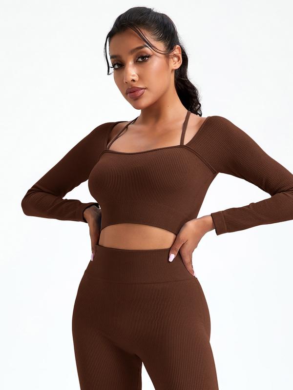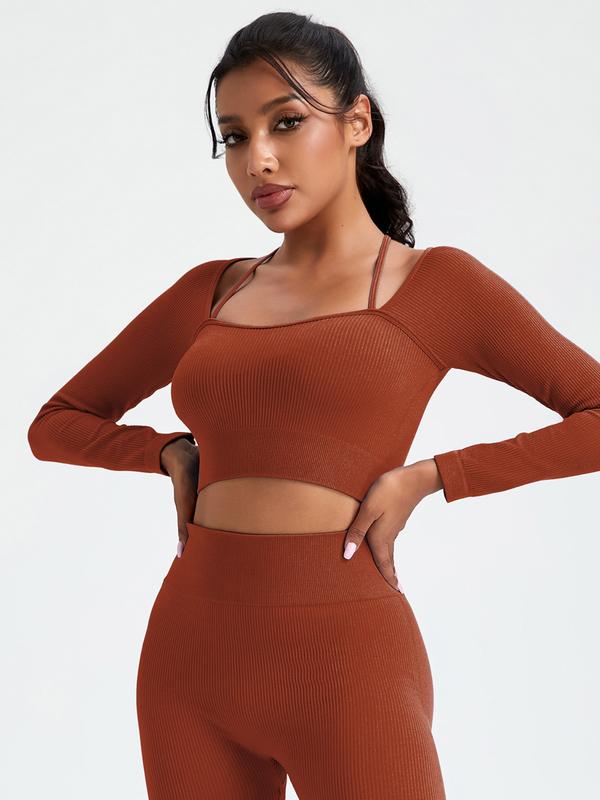 Women's Long Sleeve Casual Fitness Top, Fitness Activewear, Fitted Polyester Fabric, All Season Wearable Gym Training, Comfortable & Stylish Design