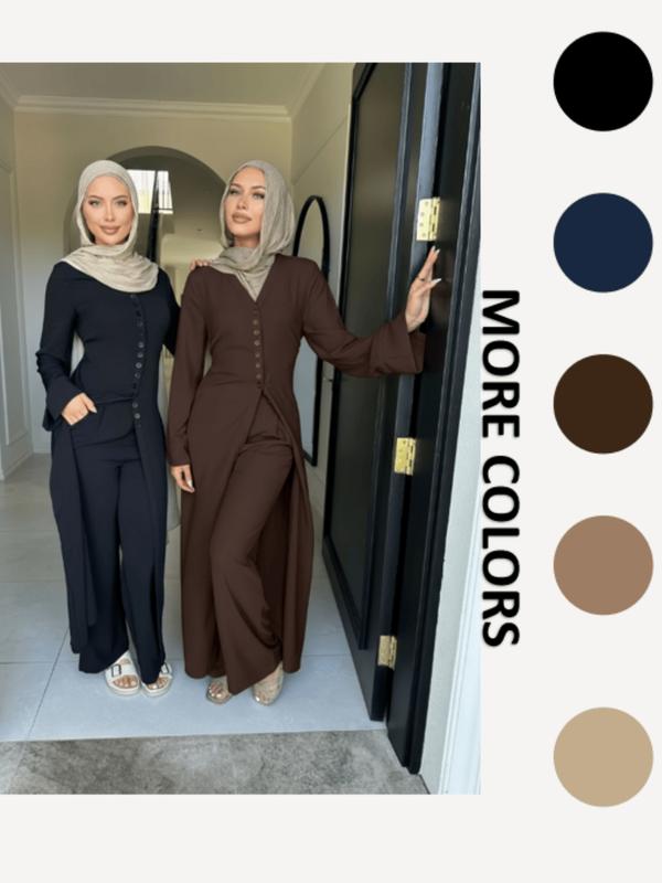 5. Women's Long Sleeve Loose Fit Plain Top & Pants Set, Casual Daily Wear, All Season Modest, Comfortable Stylish Design