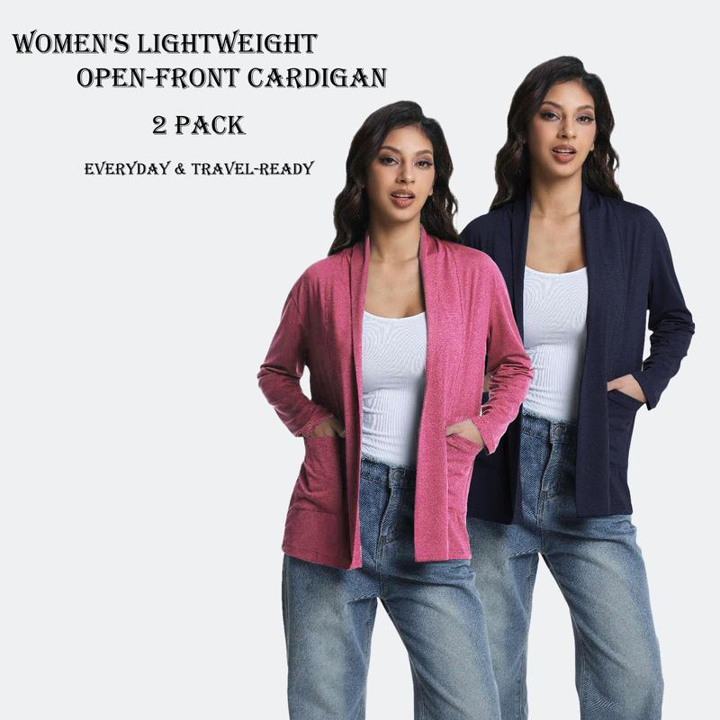 This 2-pack cardigan set is ideal for casual outings. The long sleeves and open front design offer comfort and style. Lightweight and loose knit, these cardigans are perfect for travel. They come with pockets, adding functionality. Ideal for sunbathing on the beach, these jackets are travel-ready.