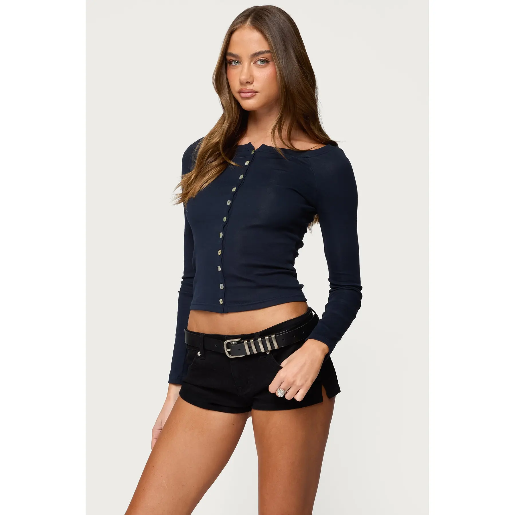 5. Cameo Boat Neck Button Up Top