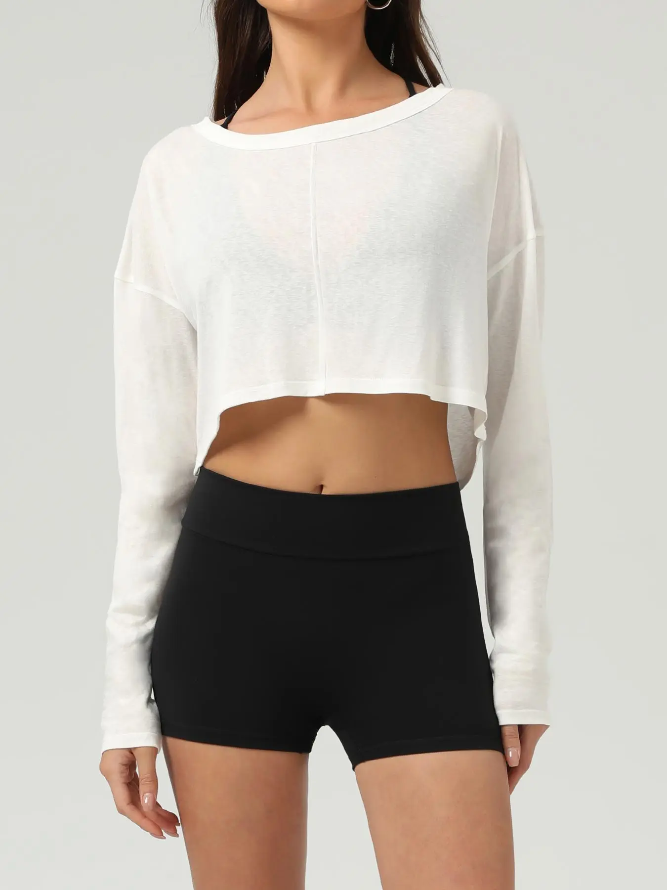 1 Piece Women's Long Sleeve Sports T-shirt, Skin-friendly and Comfortable Cross Back Short Long Sleeve Vest, Suitable for Gym and Casual Wear