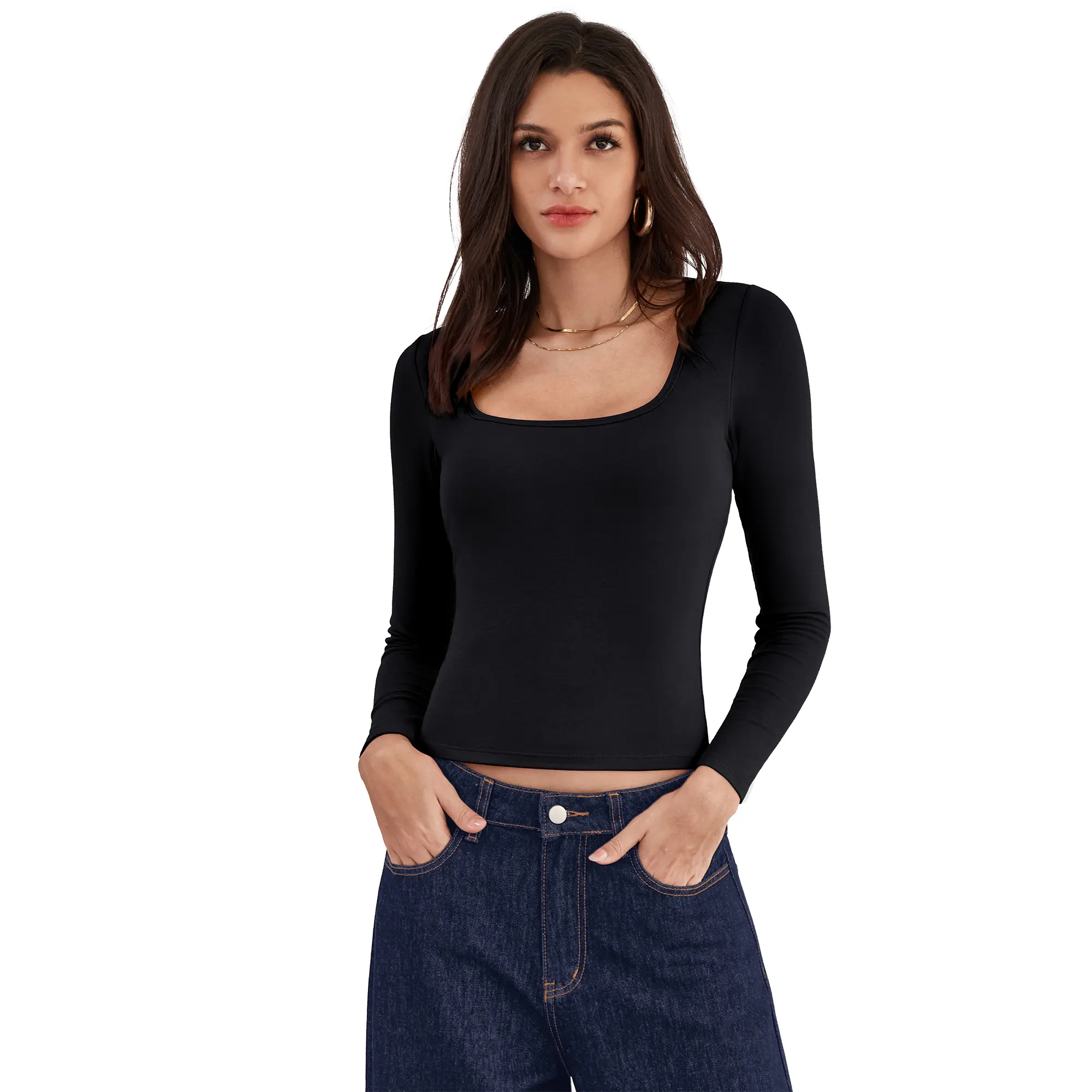✨ Transform your wardrobe with this versatile top! This women's long sleeve top boasts a square neck design, ideal for a sleek appearance. The built-in bra provides support and comfort, while the slim fit enhances your silhouette. Perfect for layering or solo wear, this top is a wardrobe essential. 🌟
