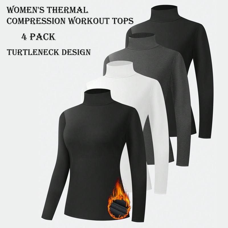 ✨ Elevate your workout wardrobe with our 4 Pack Women's Long Sleeve T Shirts. These thermal workout underwear shirts are designed for skiing, gym, and outdoor sports. The turtle neck and fleece-lined compression feature ensure comfort and warmth. Ideal for layering, these base layer tops provide essential support.