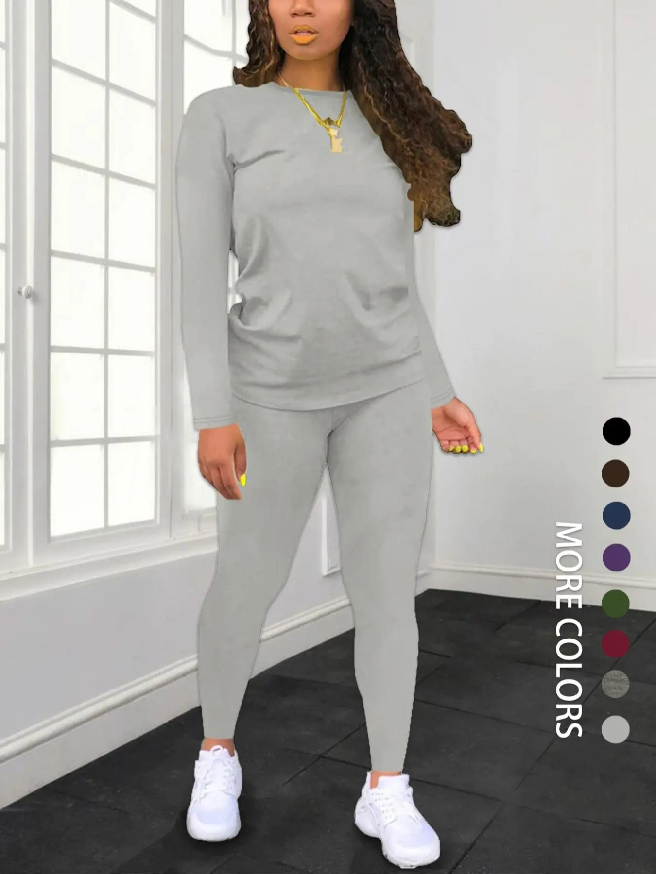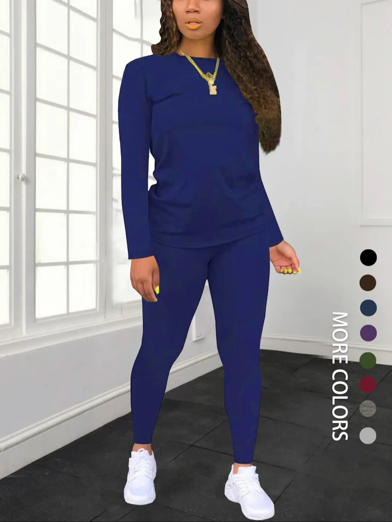 These soft comfy outfits that's really nothing special cute to throw on to run errands. The shirt has a high rounded color beautiful stitching and the leggings are quality stitching. This outfit isn't for me. It looks like I have a pair of long john underwear you put on in the winter to stay.