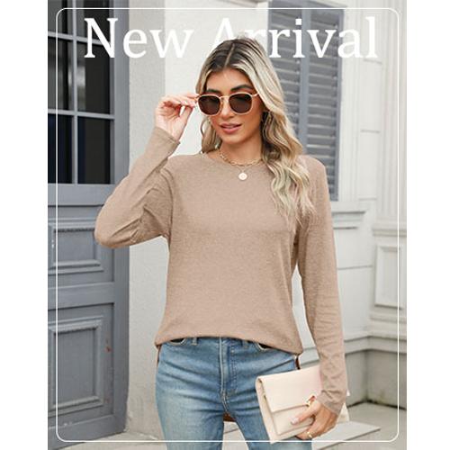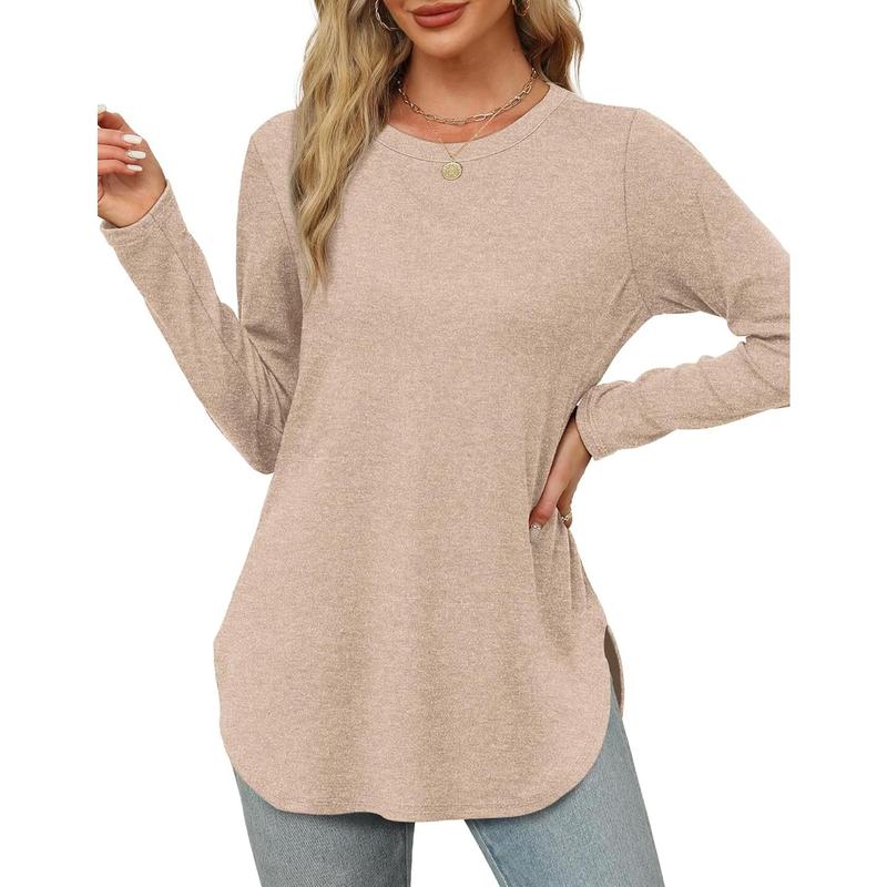 Long Sleeve Shirts for Women Loose Fit Crewneck Basic Tops Side Split