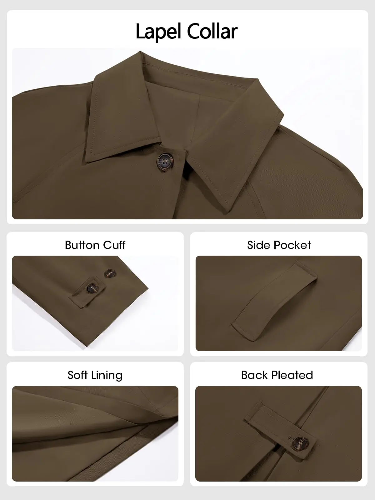 ·Material: This women's trench coat is constructed from premium 100% polyester, ensuring superb wrinkle and wind resistance. It is lightweight, odor-free, and offers exceptional comfort for all-day wear