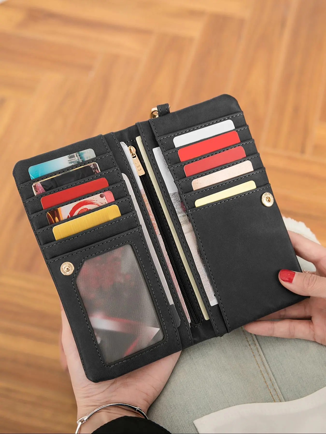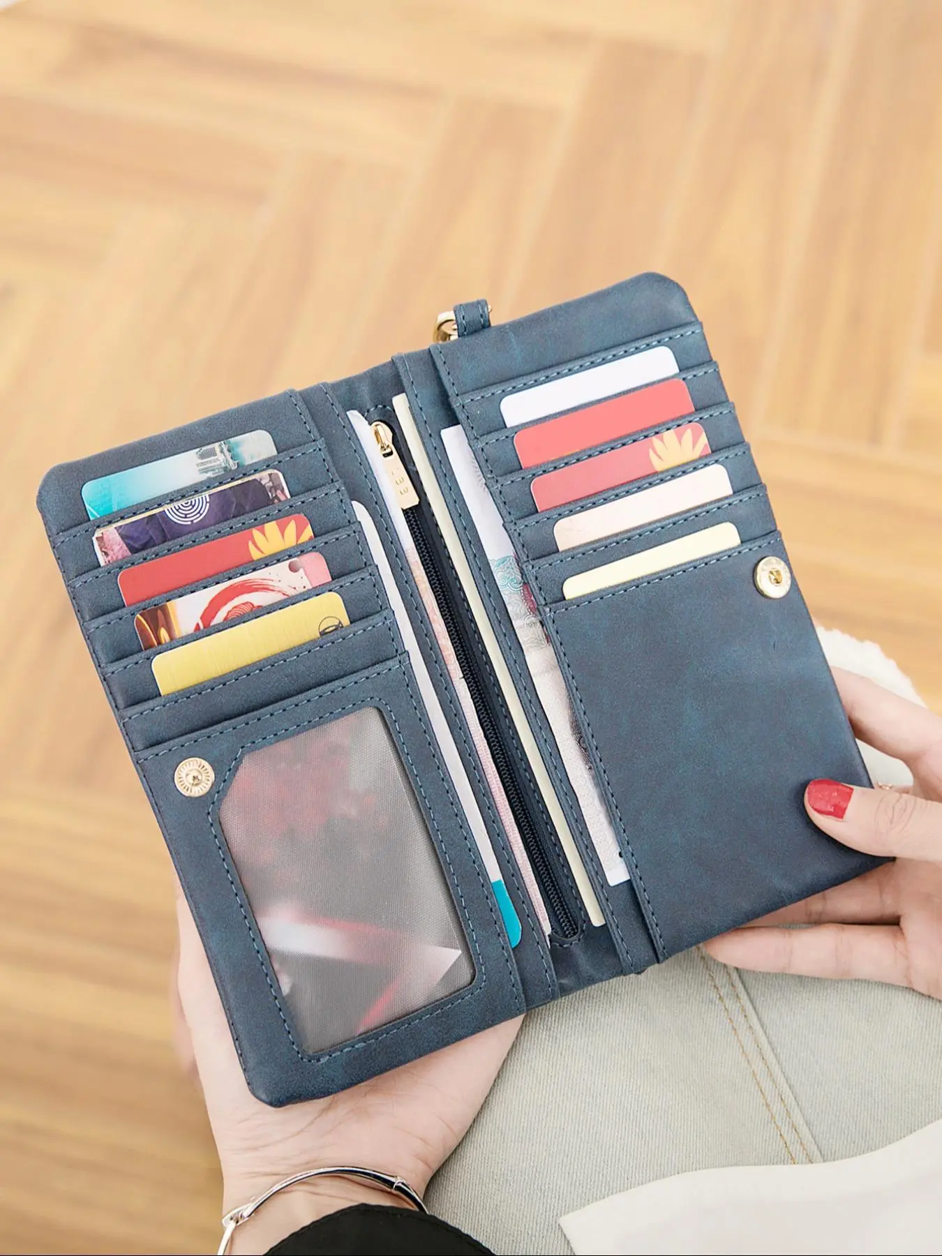 The color is my favorite, I love how many pockets there are a zippers as well , the last wallet I purchased off here was garbage !